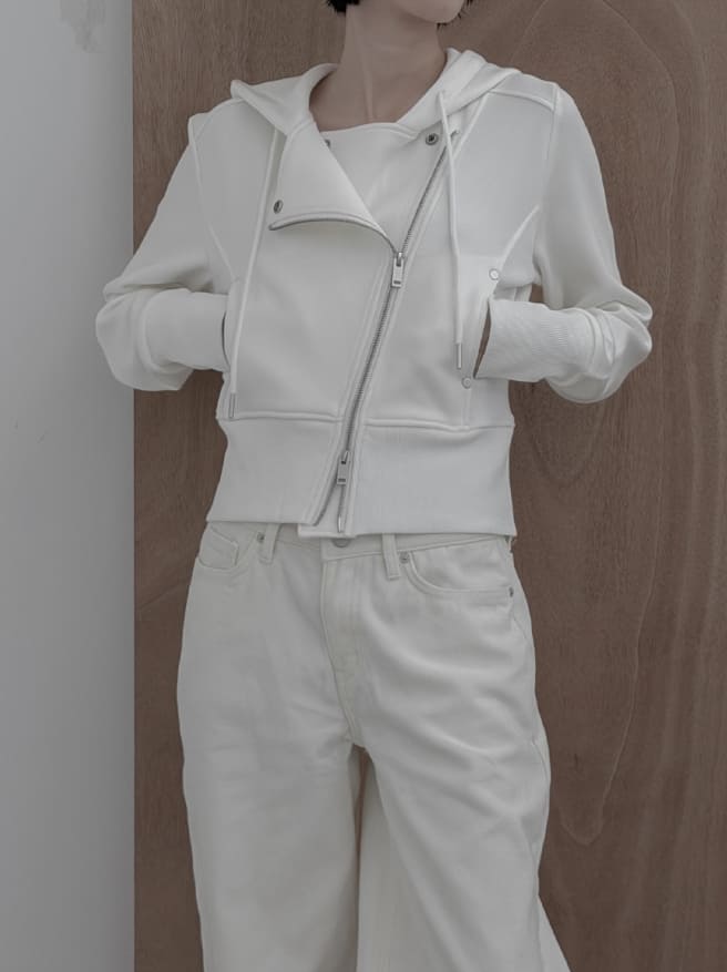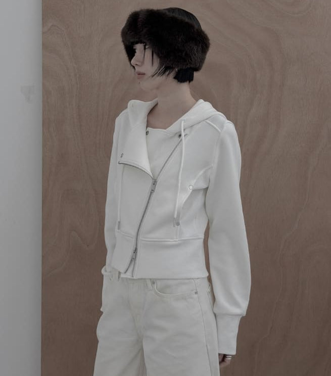 モエル裏起毛リブライダーフードジップアップ