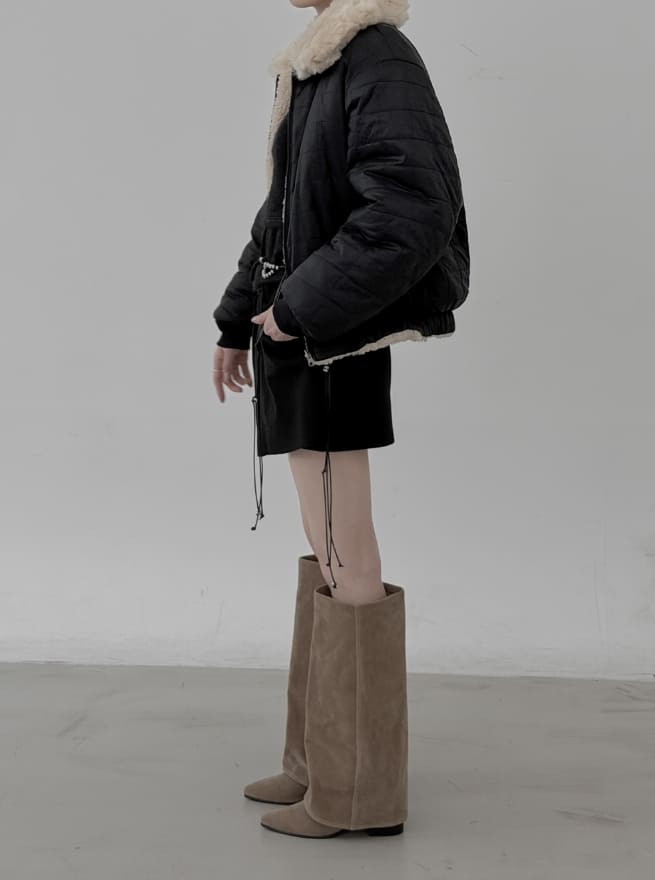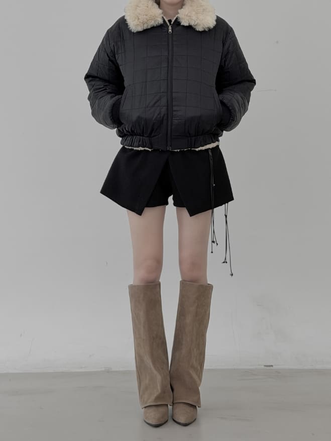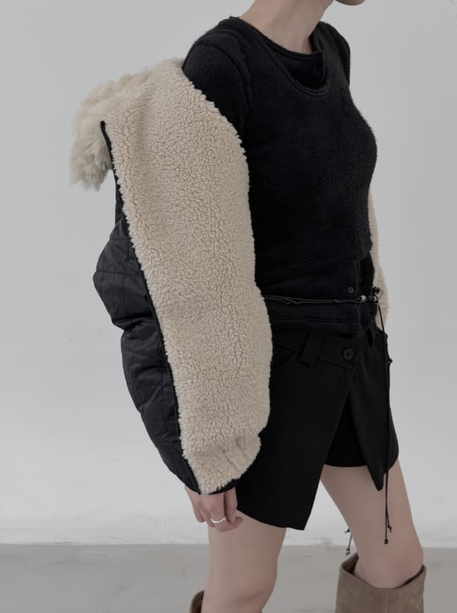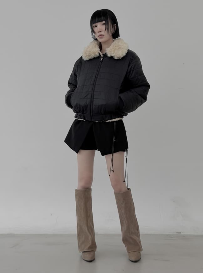リバーシブルファー襟付きキルティングダンブルジャンパー