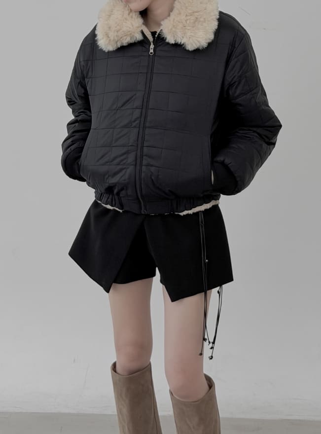 Reversible Fur Collar Quilted Dumble Jumper