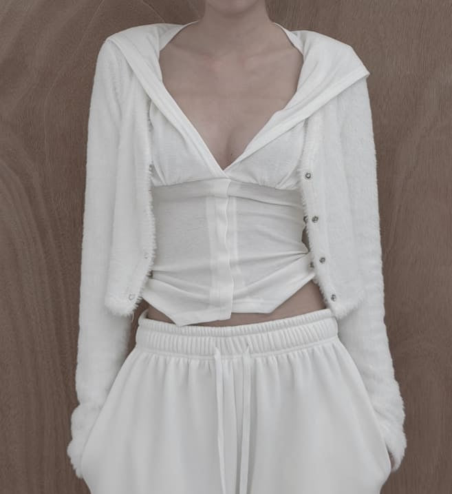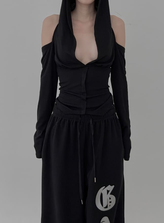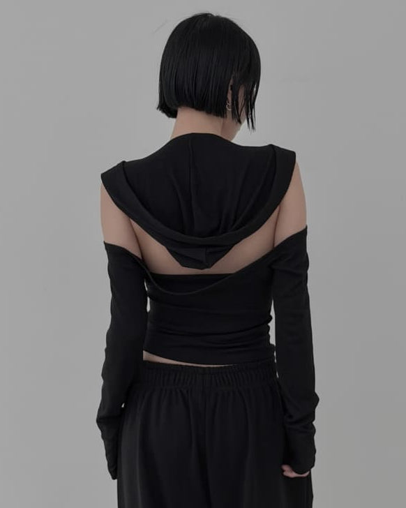 Rose Deep V-Neck Backless Hooded Top