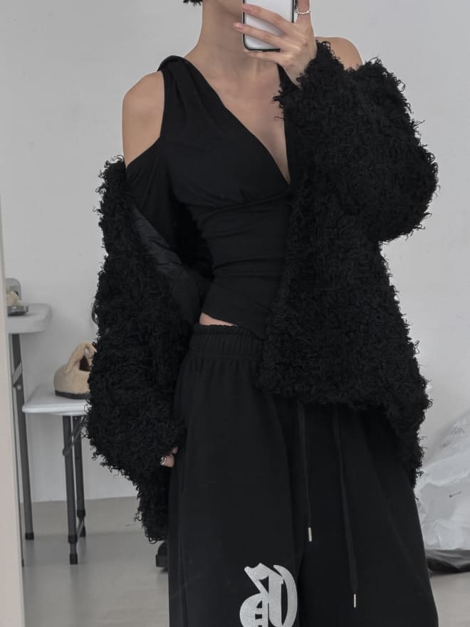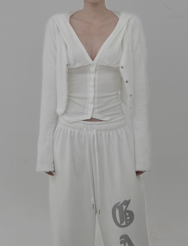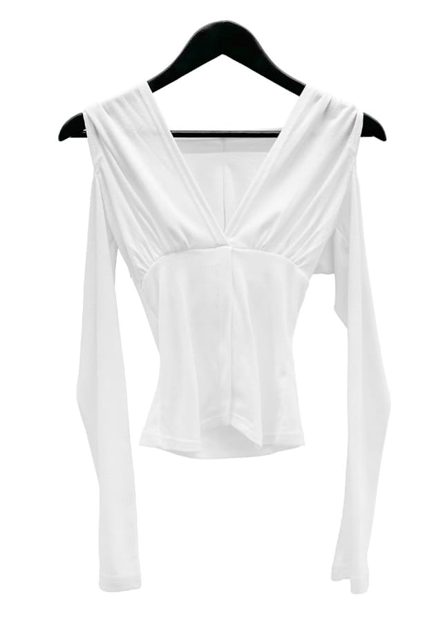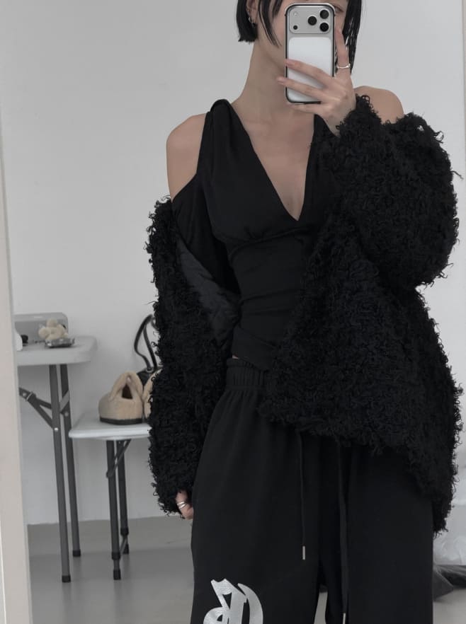 ローズディープVネックバックレスフードトップ