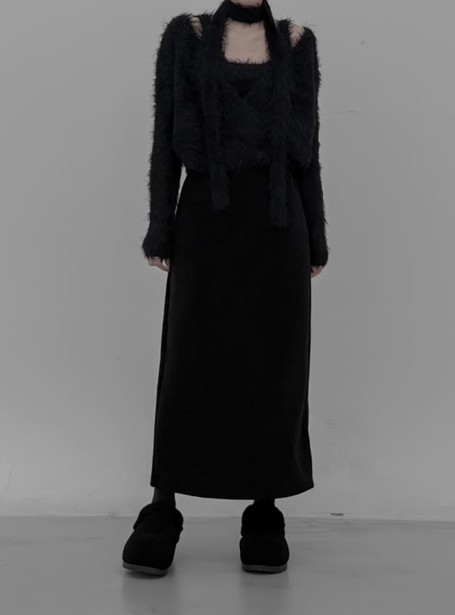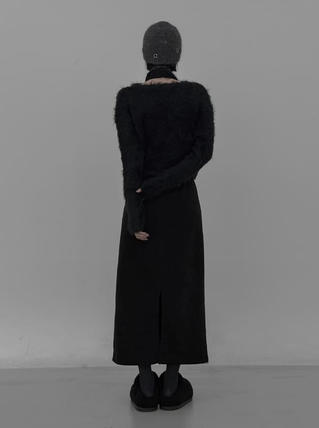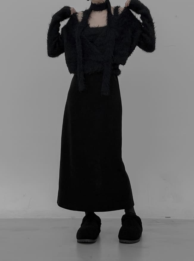 Tet suede slit long skirt