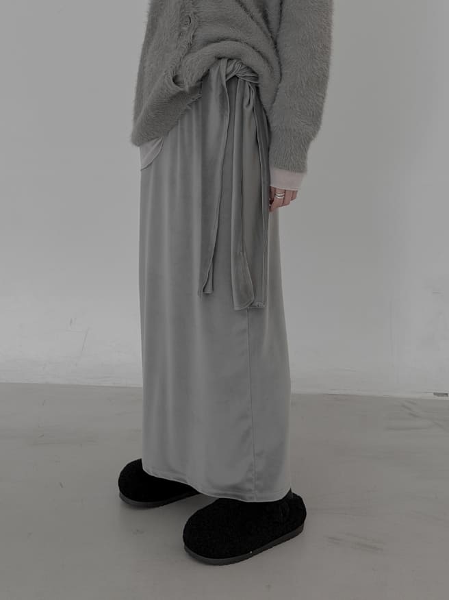 Velour Knot Maxi Long Skirt