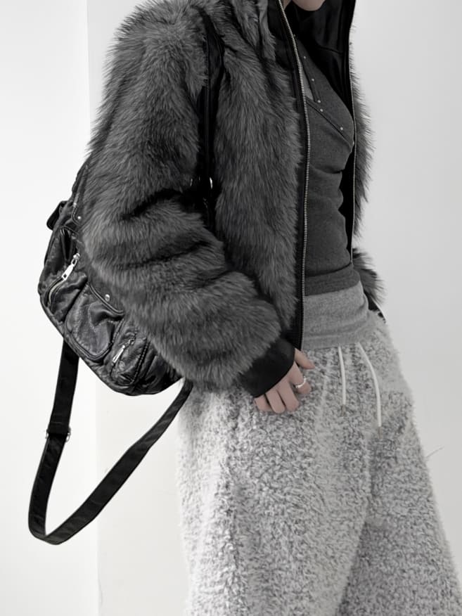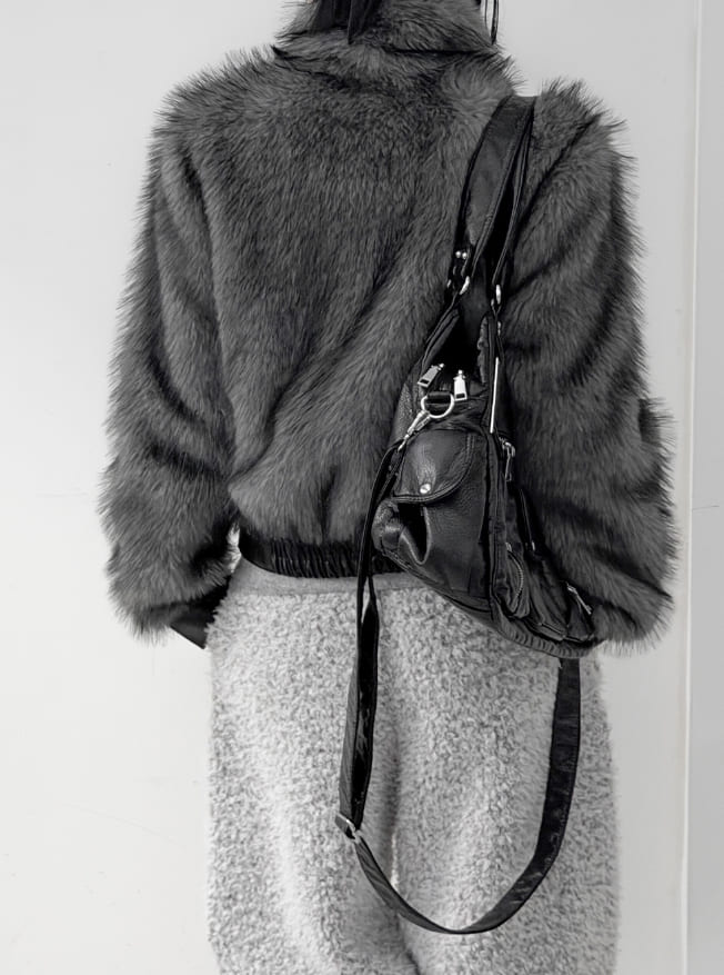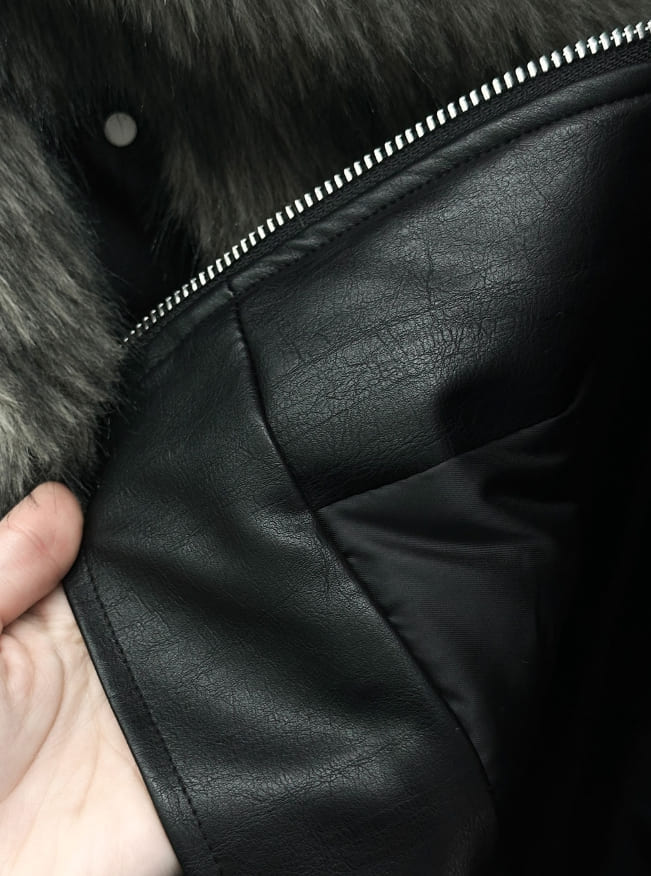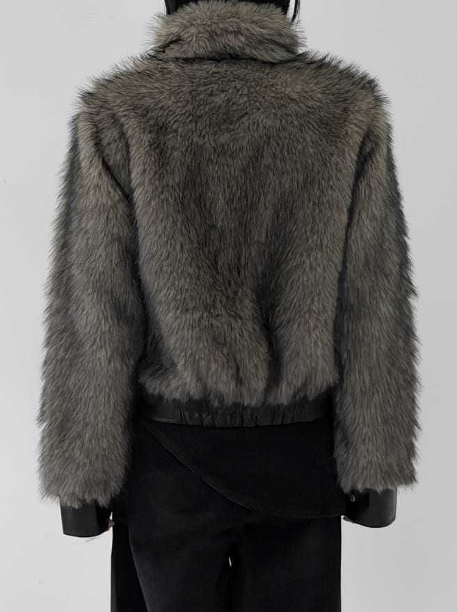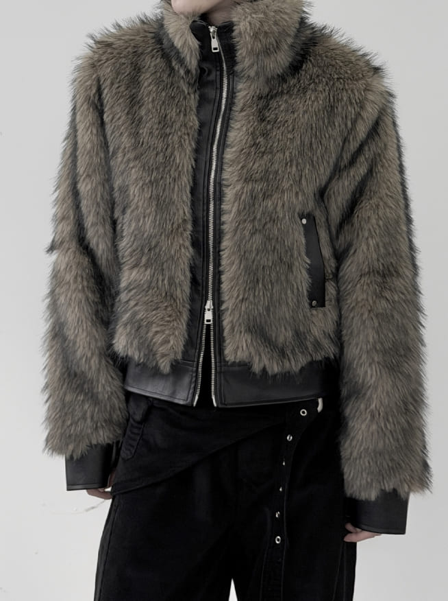 ウルフツートーンレザーファージャンパー