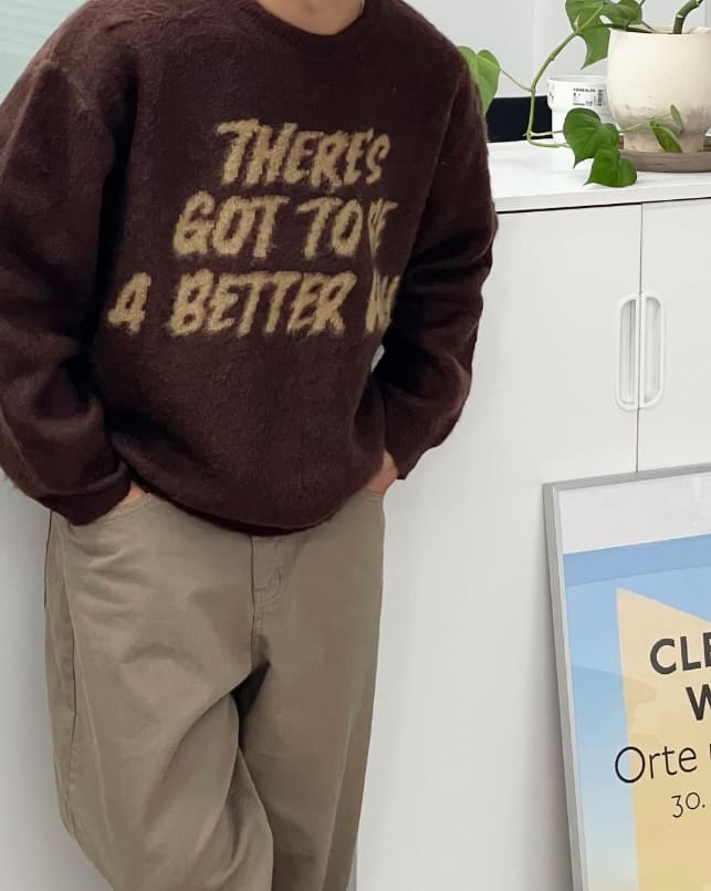 ベリーヘアリーレタリングニット