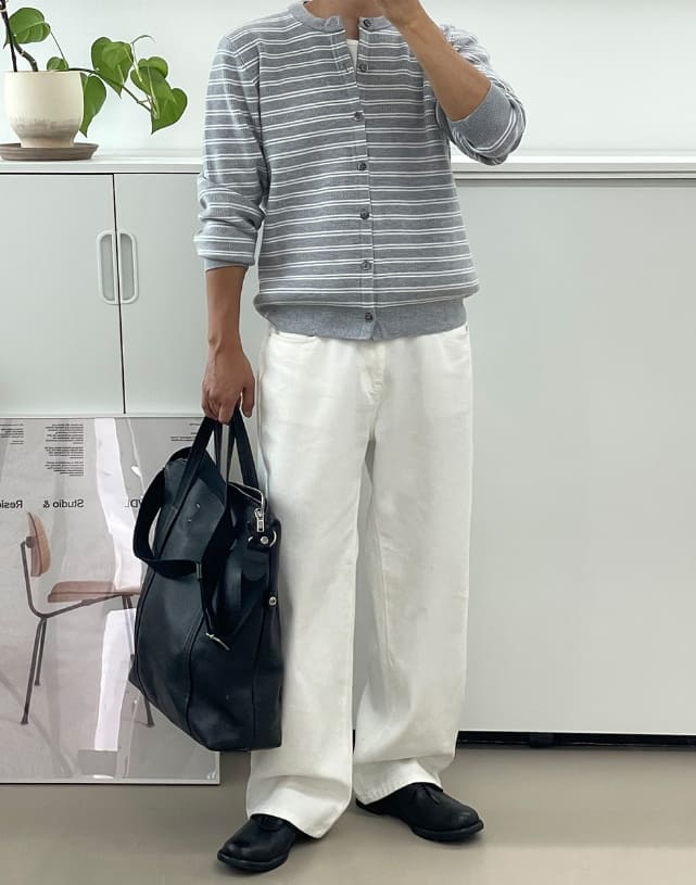 -180cm / 67kg / Ivory, Grey, Navy Lサイズ着用