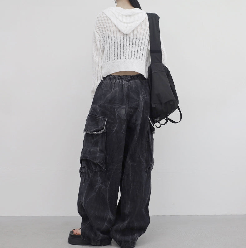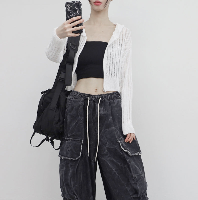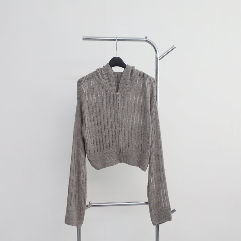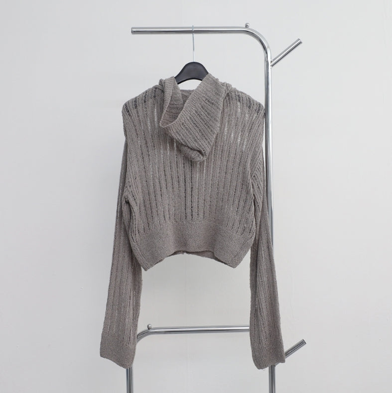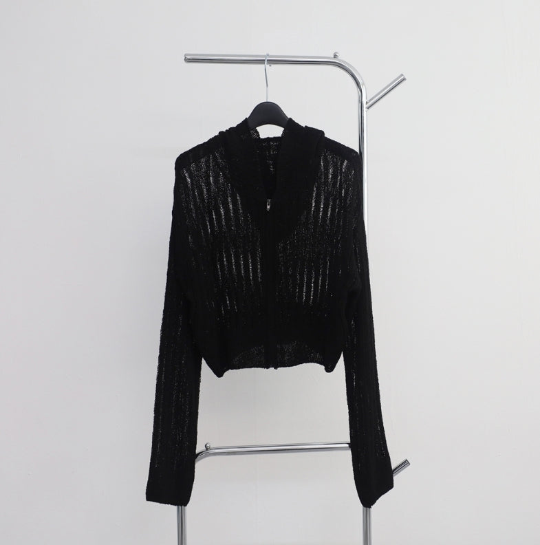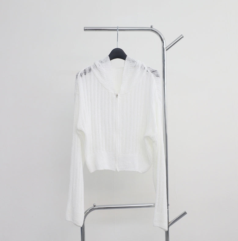 Bonhe See-Through Knit Hooded Zip-Up