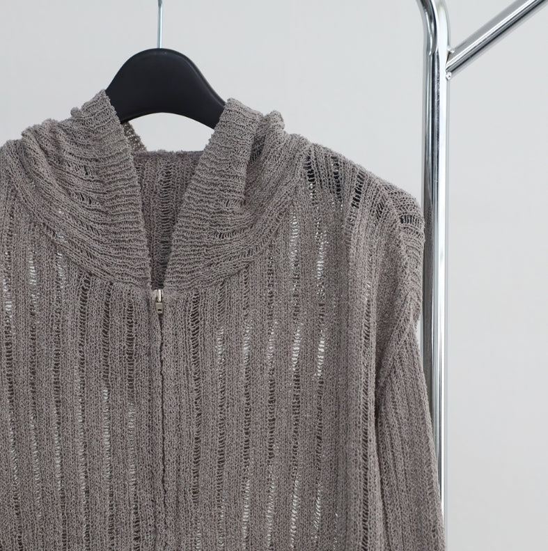 ボンヘシースルーニットフードジップアップ