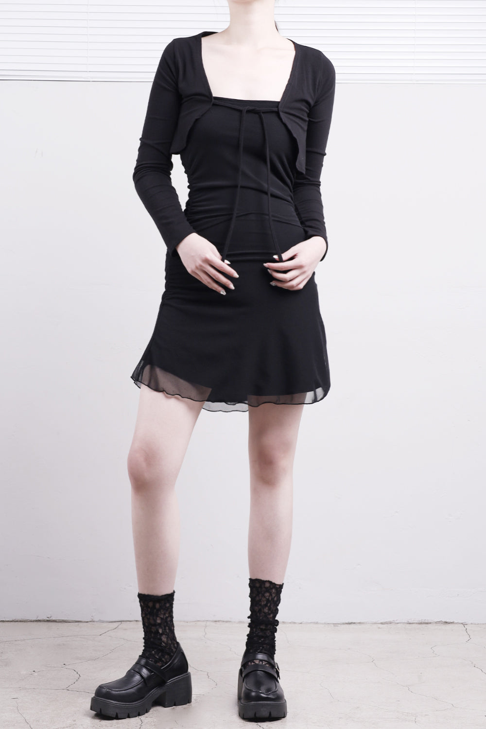 キュリングクロップカーディガン+シフォンワンピースセット