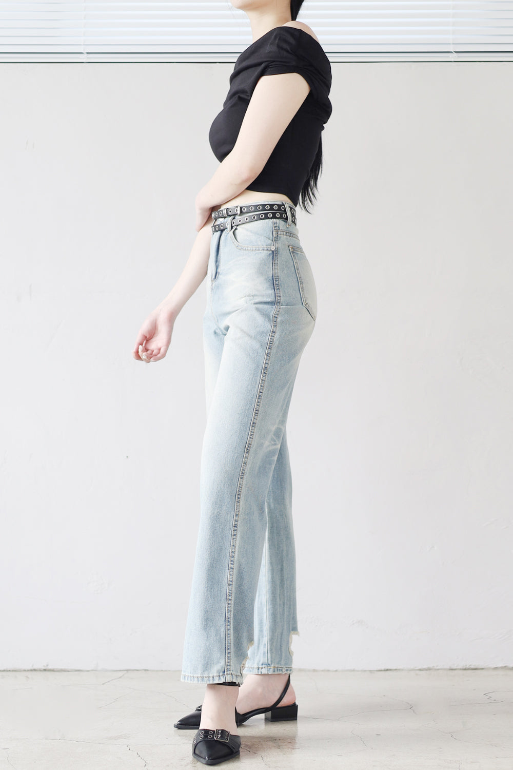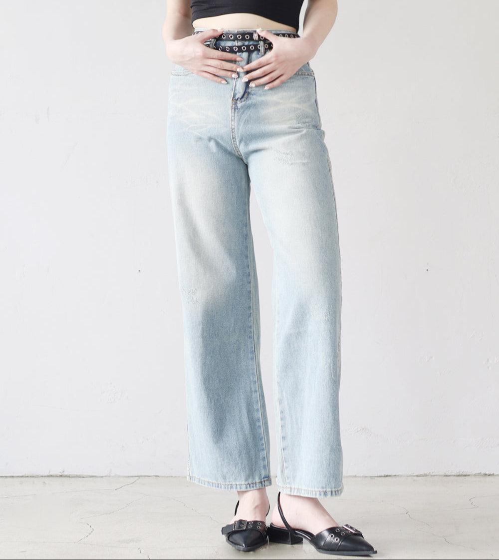 デリンカットオフワイドデニムパンツ
