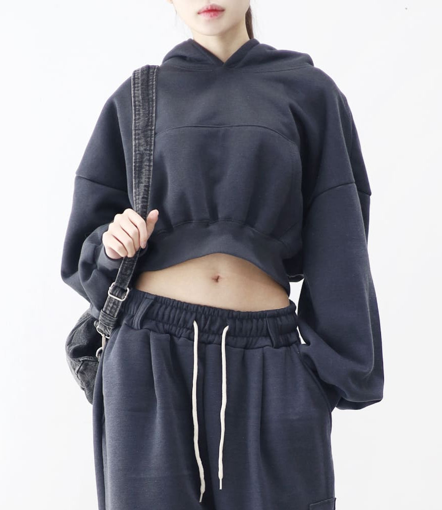 Diction Embroidered Crop Over Hoodie