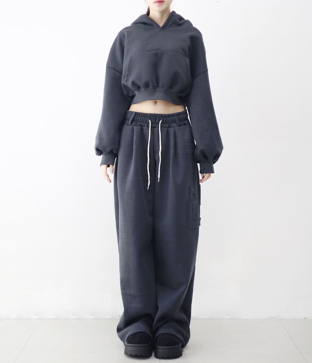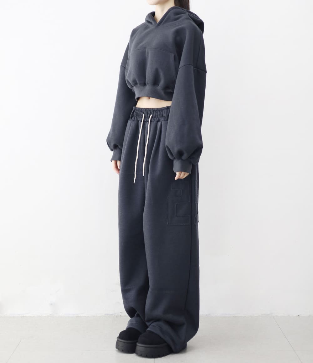 ディクション刺繍クロップオーバーフーディ