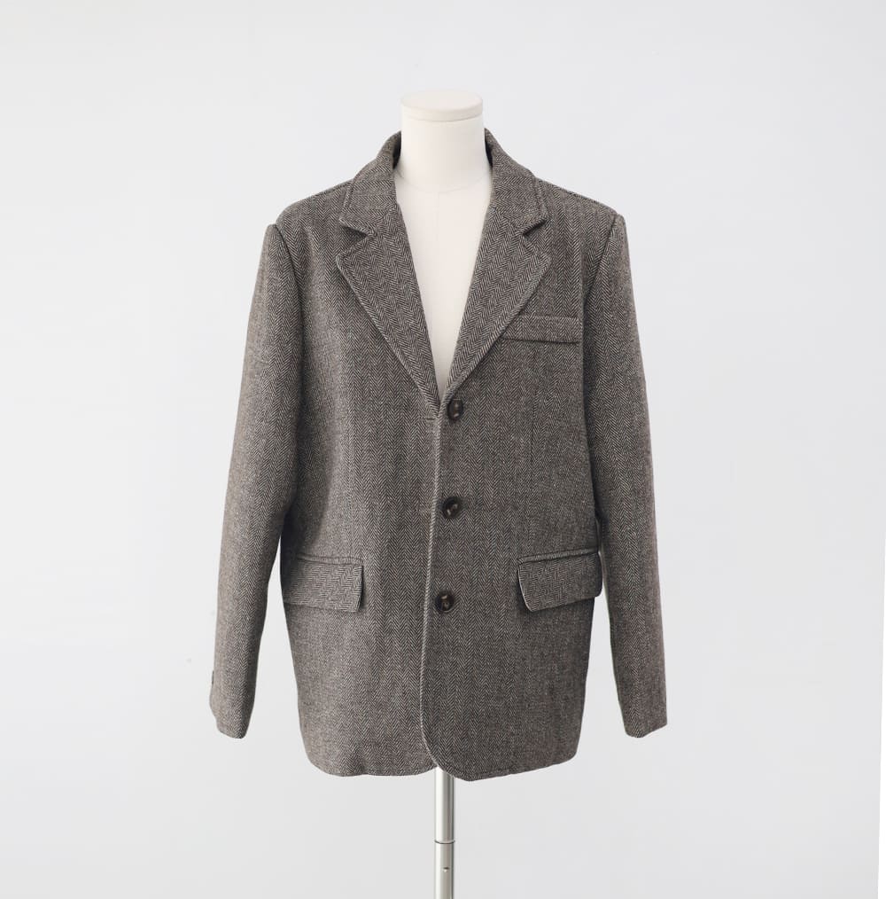 ジュートヘリンボーンオーバーフィットウールジャケット