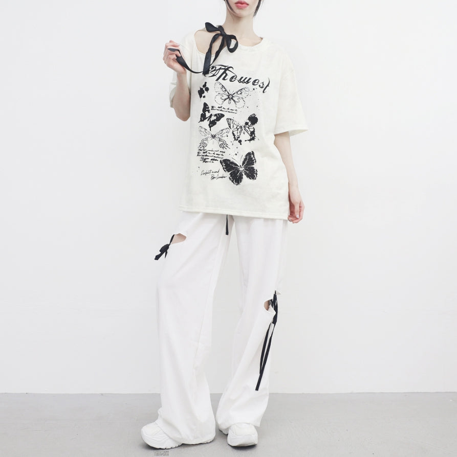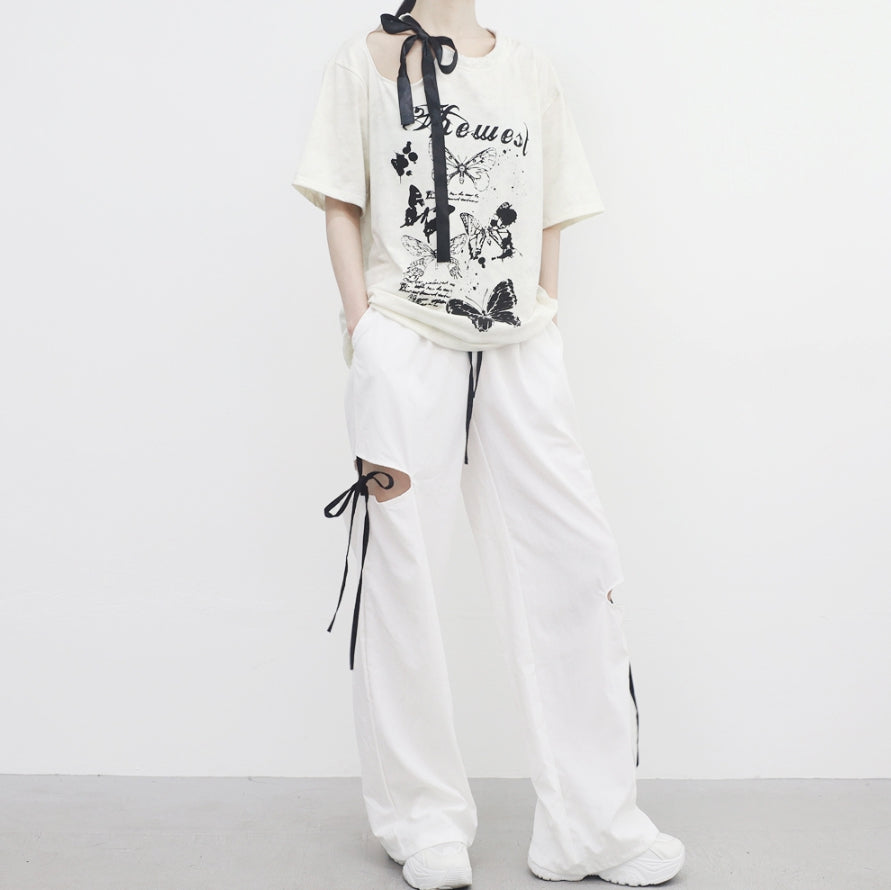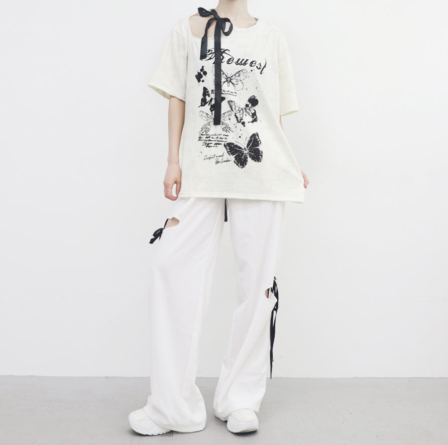 -ONE SIZE (ウエスト(ゴム)64 ヒップ100 股上33 股下72 もも周り64 裾周り56 総丈105)