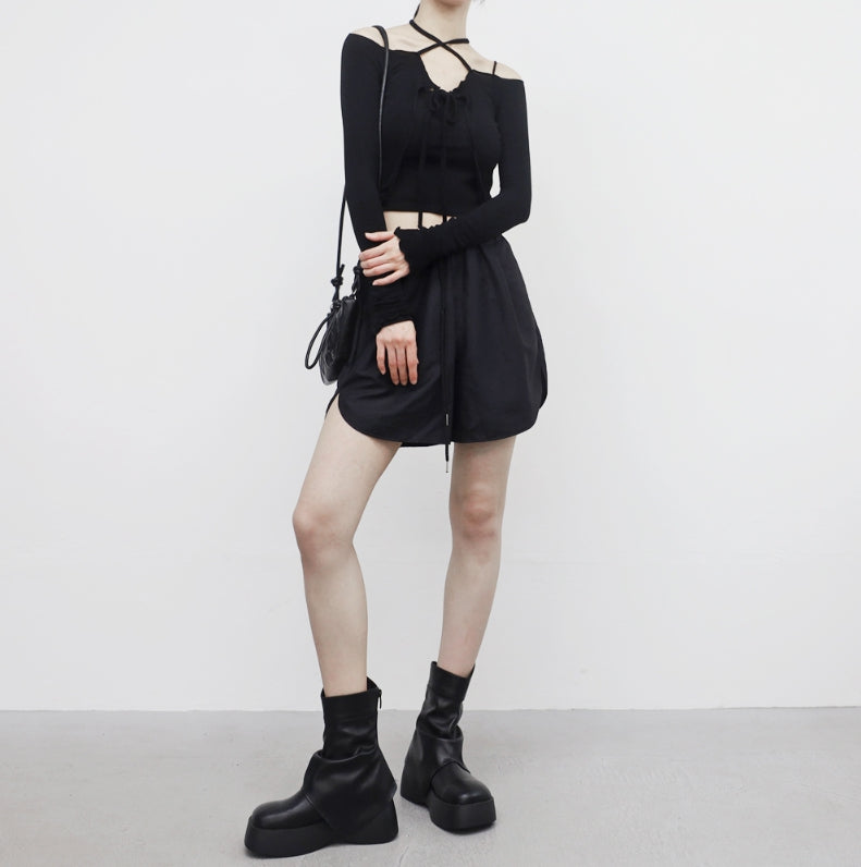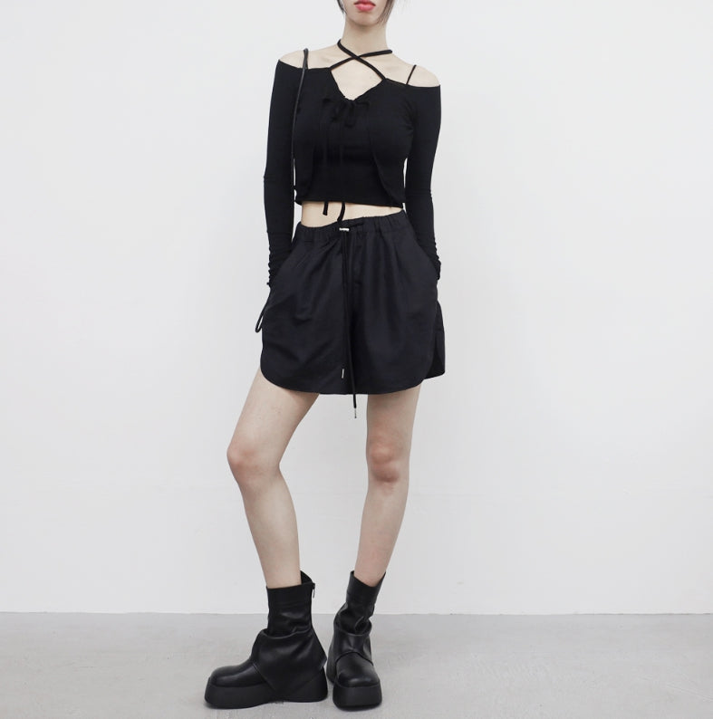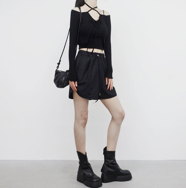 -ONE SIZE (ウエスト(ゴム)66 ヒップ100 股上37 股下3 もも周り62 裾周り62 総丈40)