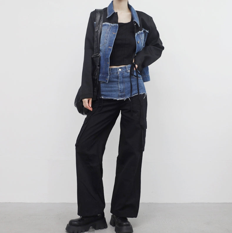 -S (ウエスト68 ヒップ82 股上32 股下67 もも周り56 裾周り(調整可能)54 総丈99)