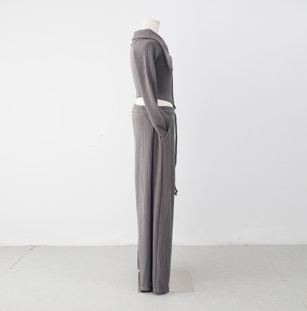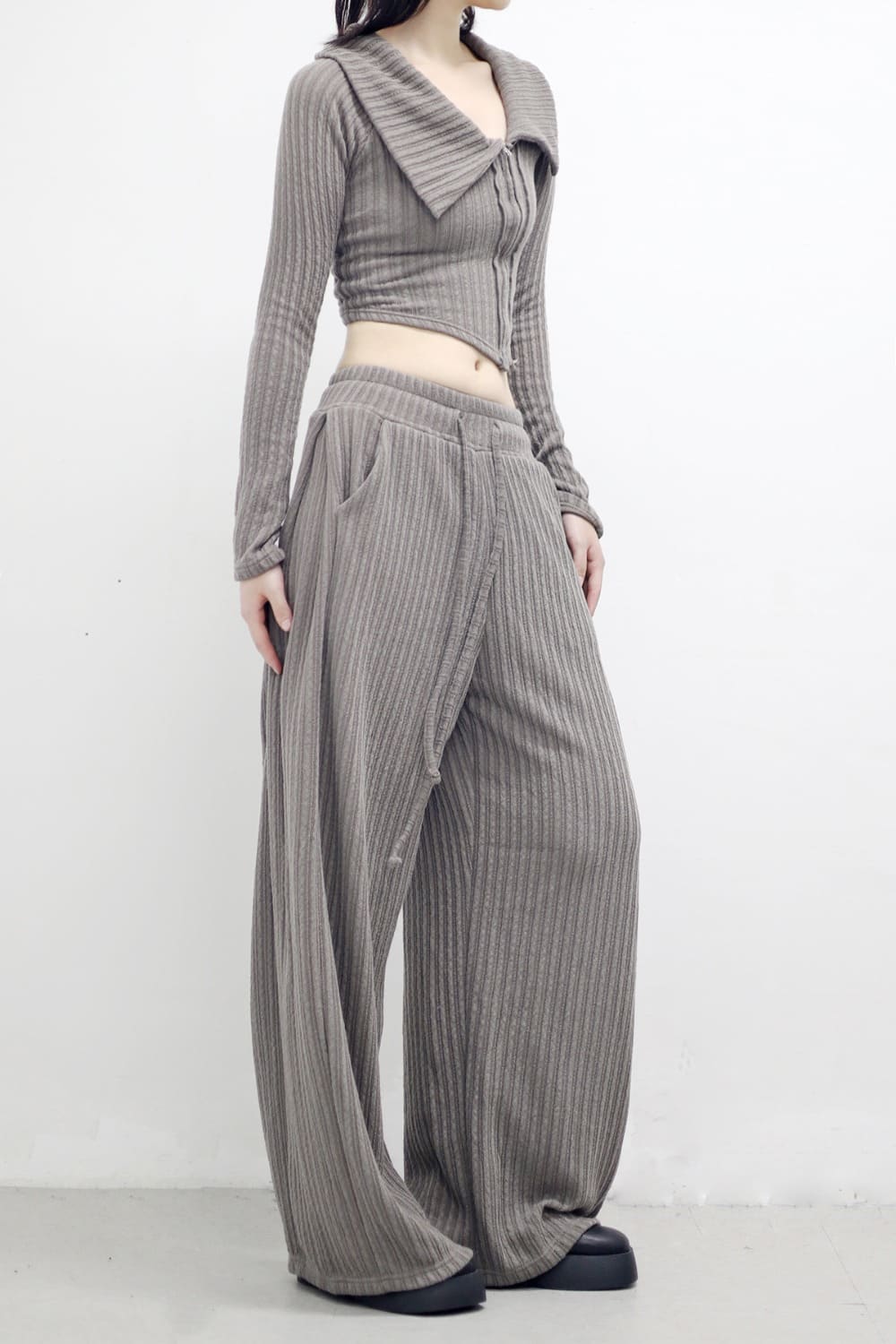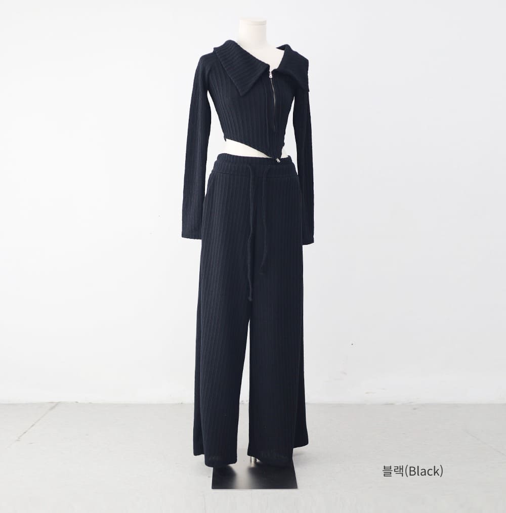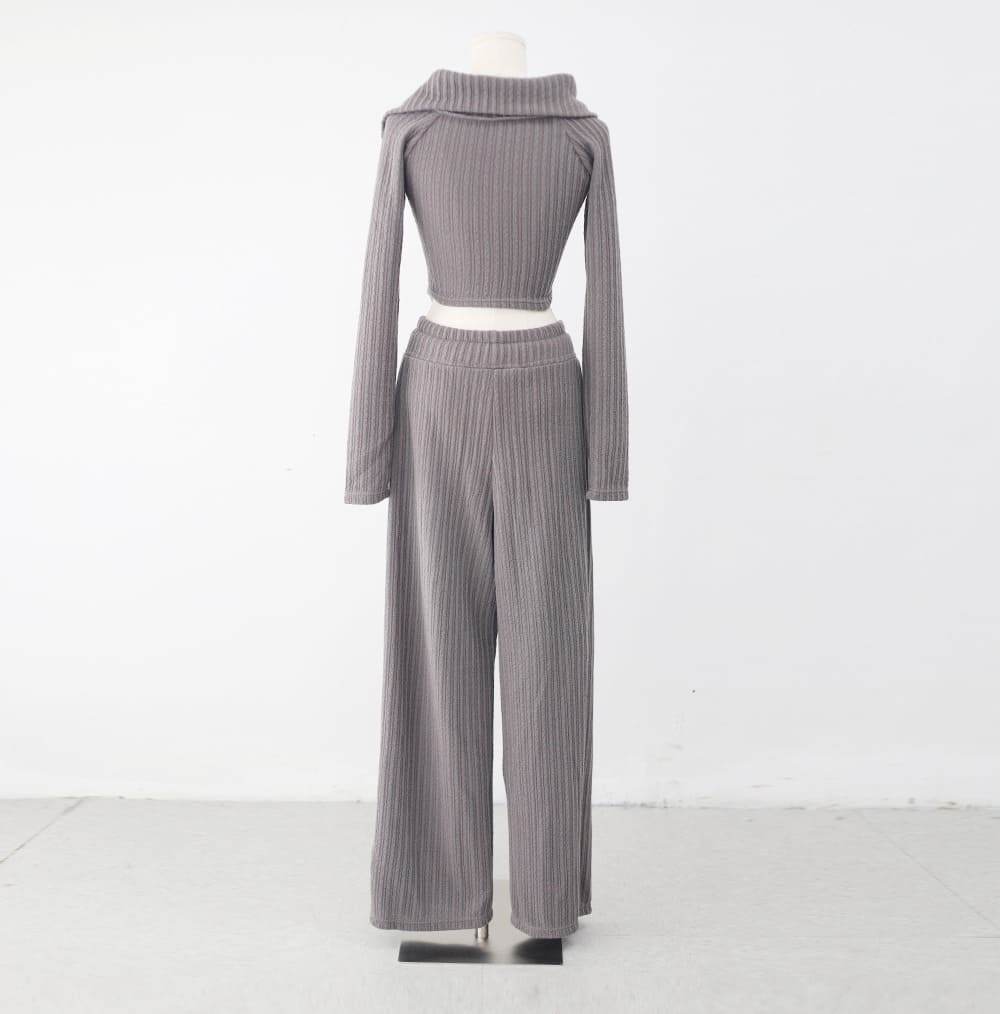 Showdy Unbalanced Rib Cardigan + Pants Set