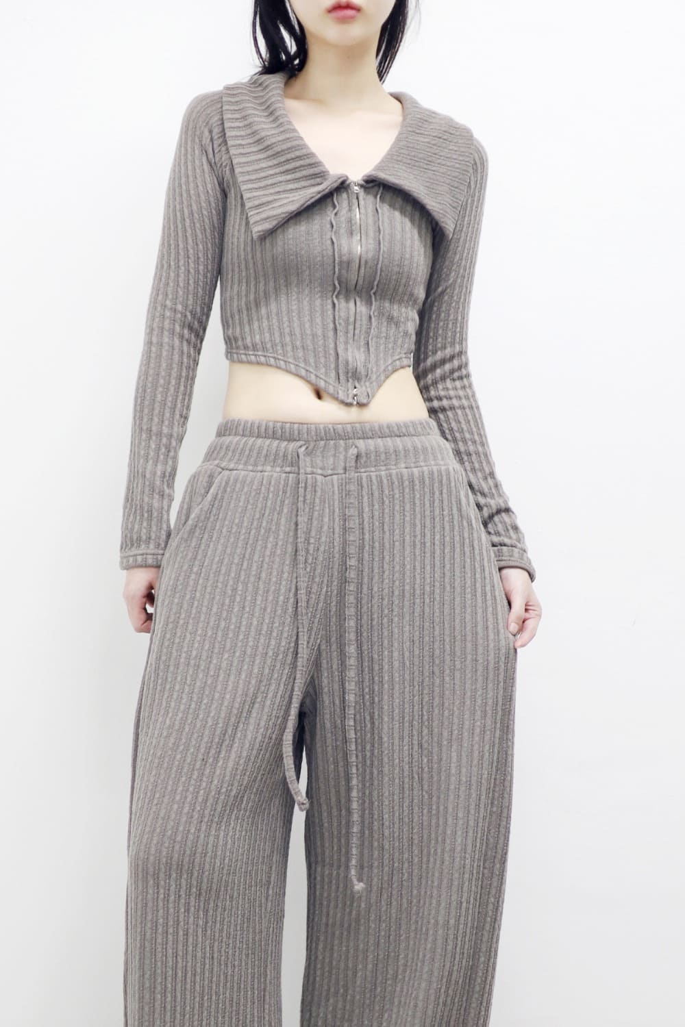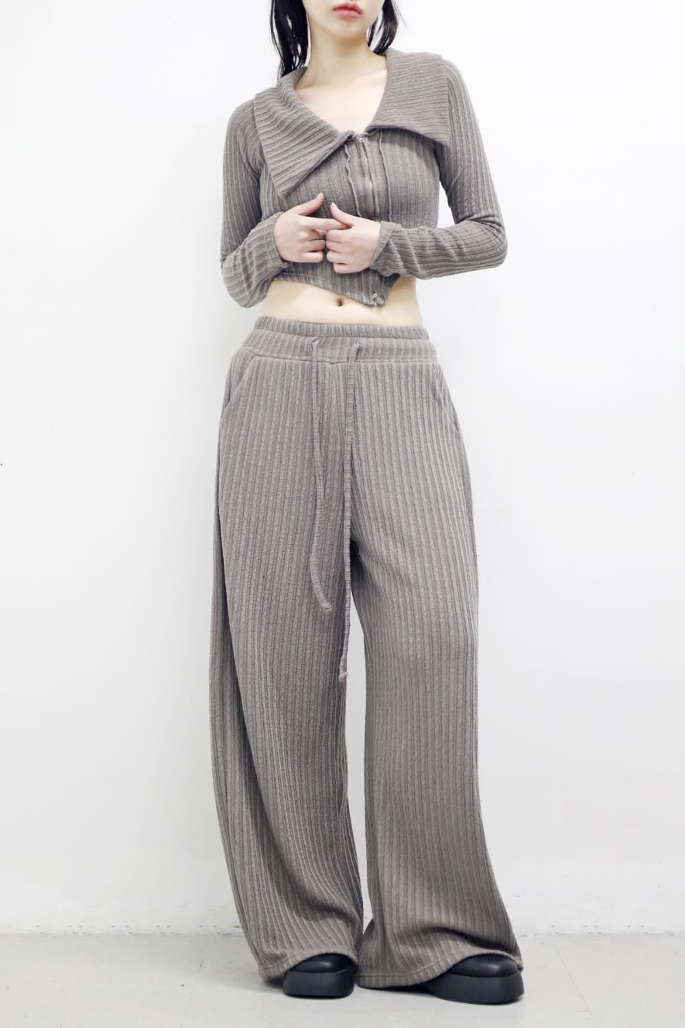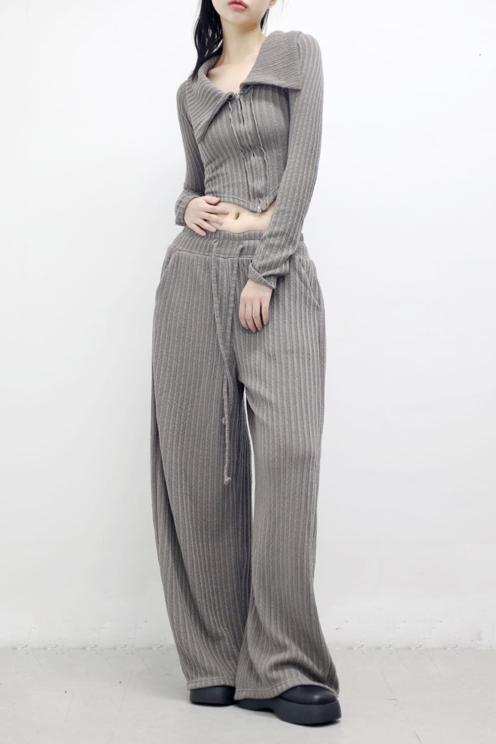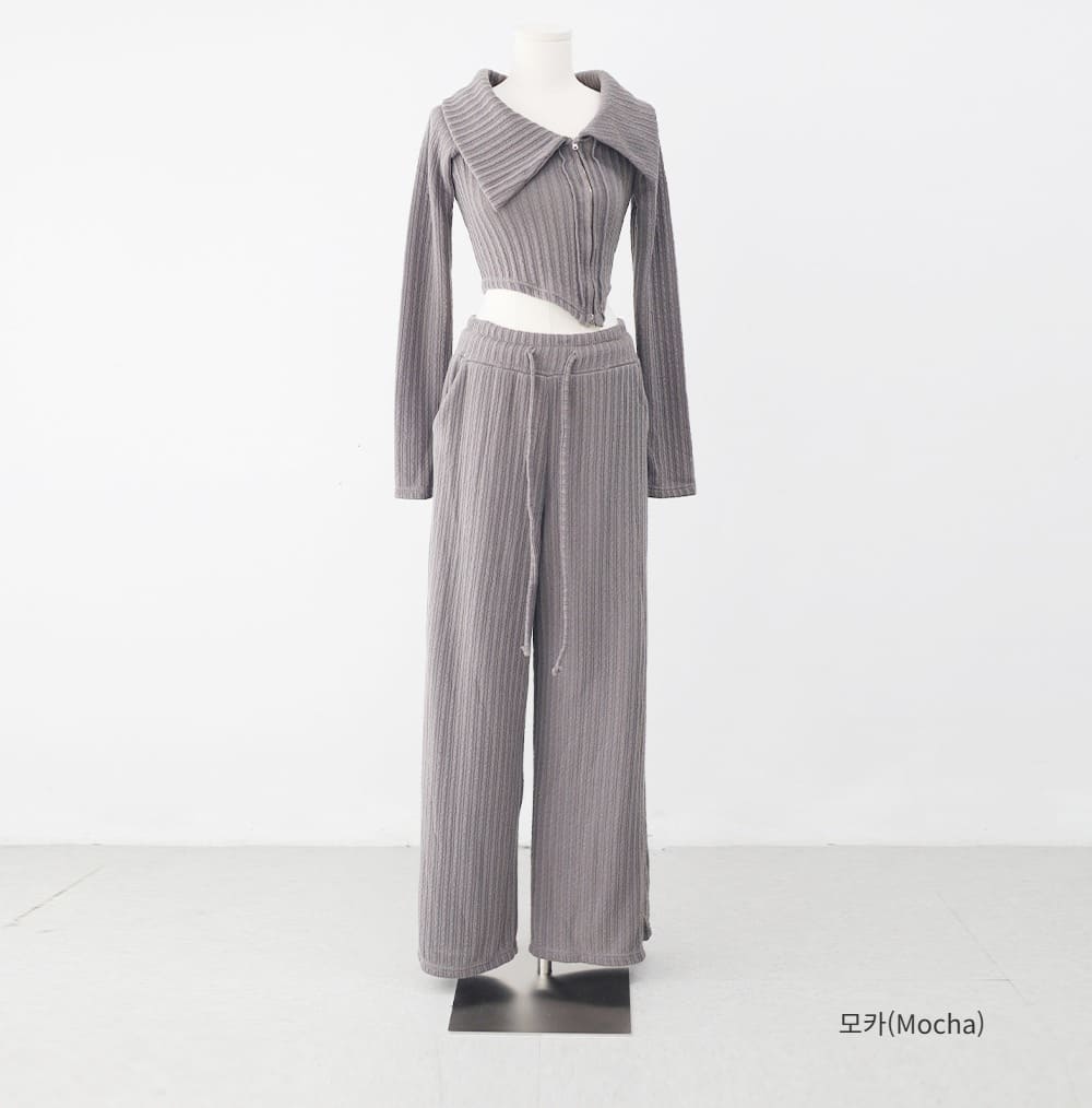 Showdy Unbalanced Rib Cardigan + Pants Set