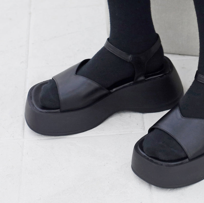 シモオープントープラットフォームソールサンダル