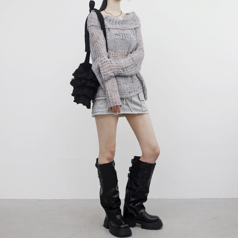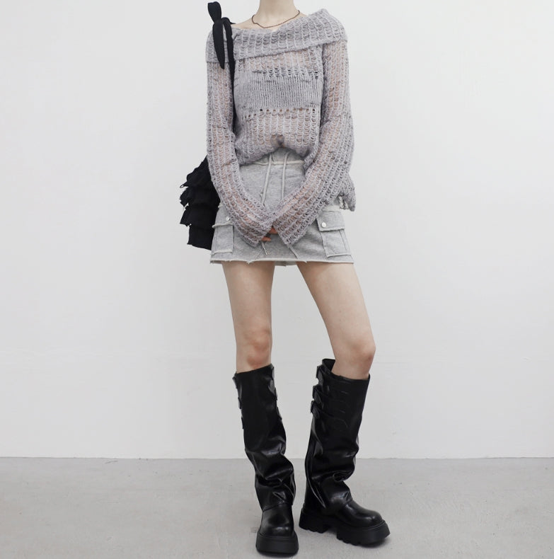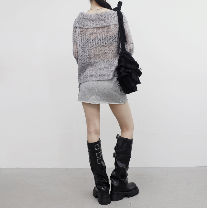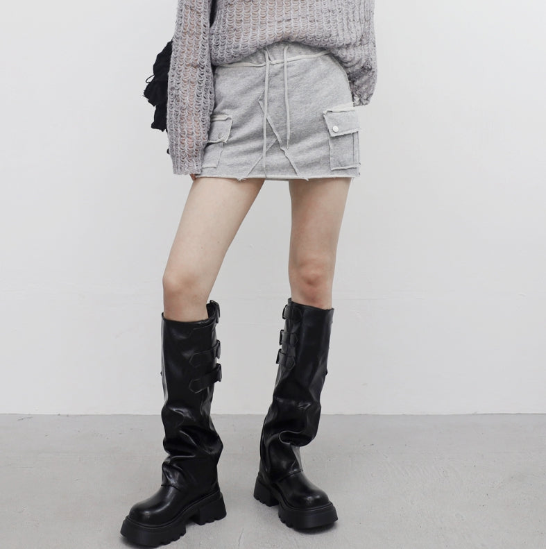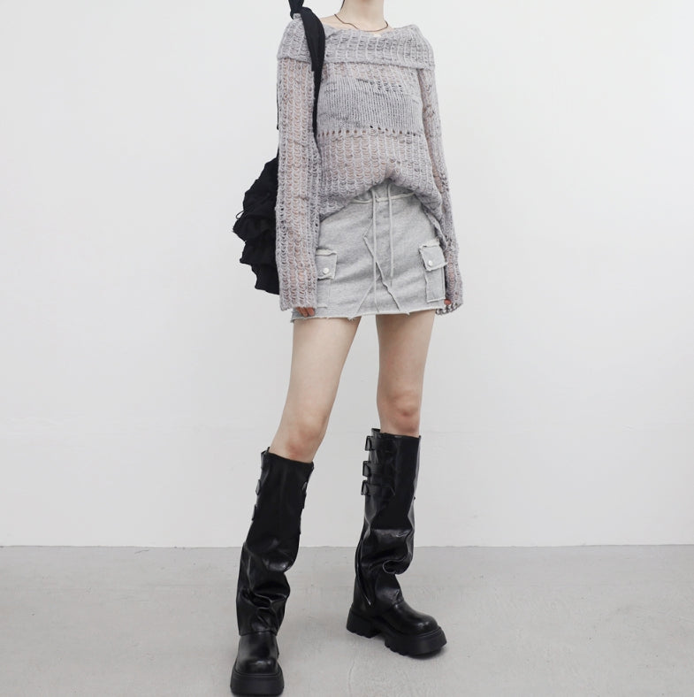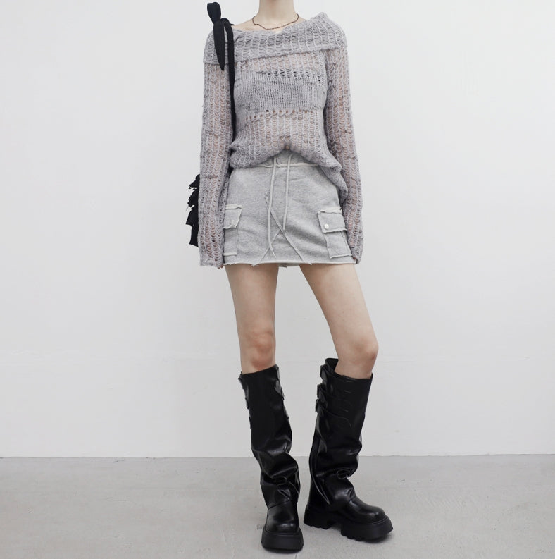 ビナポケットダメージキュロットスカート