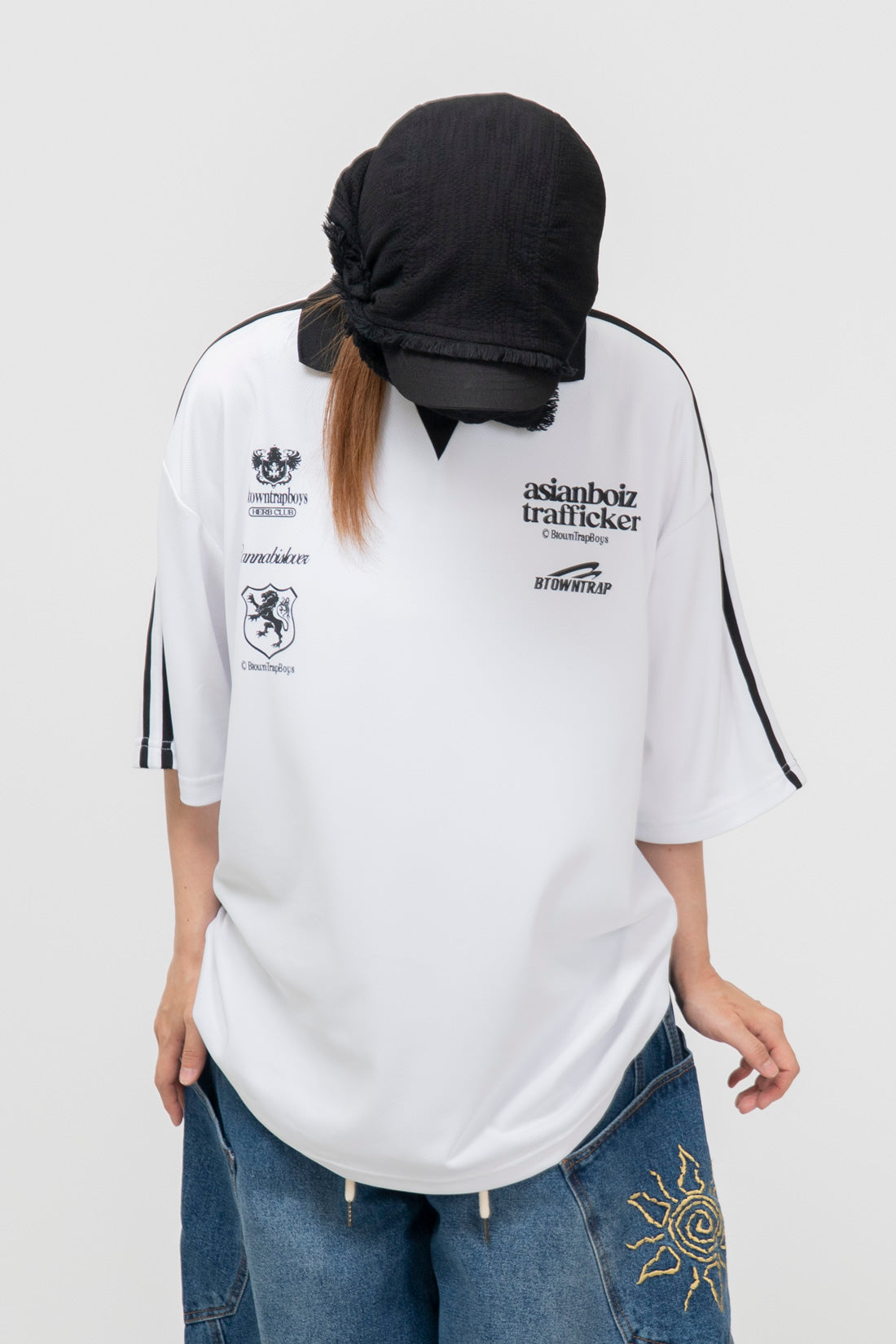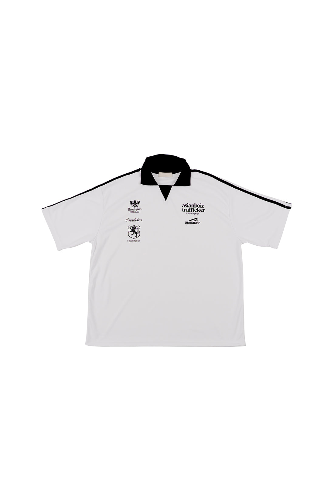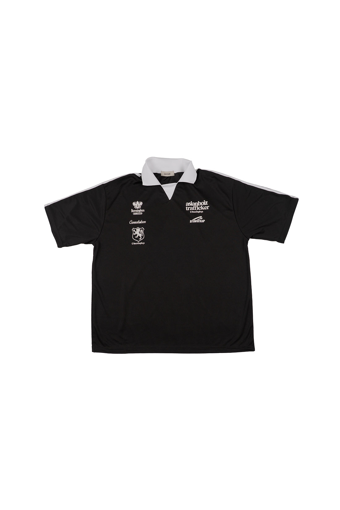 カラーブロックライン襟付きジャージ半袖Tシャツ