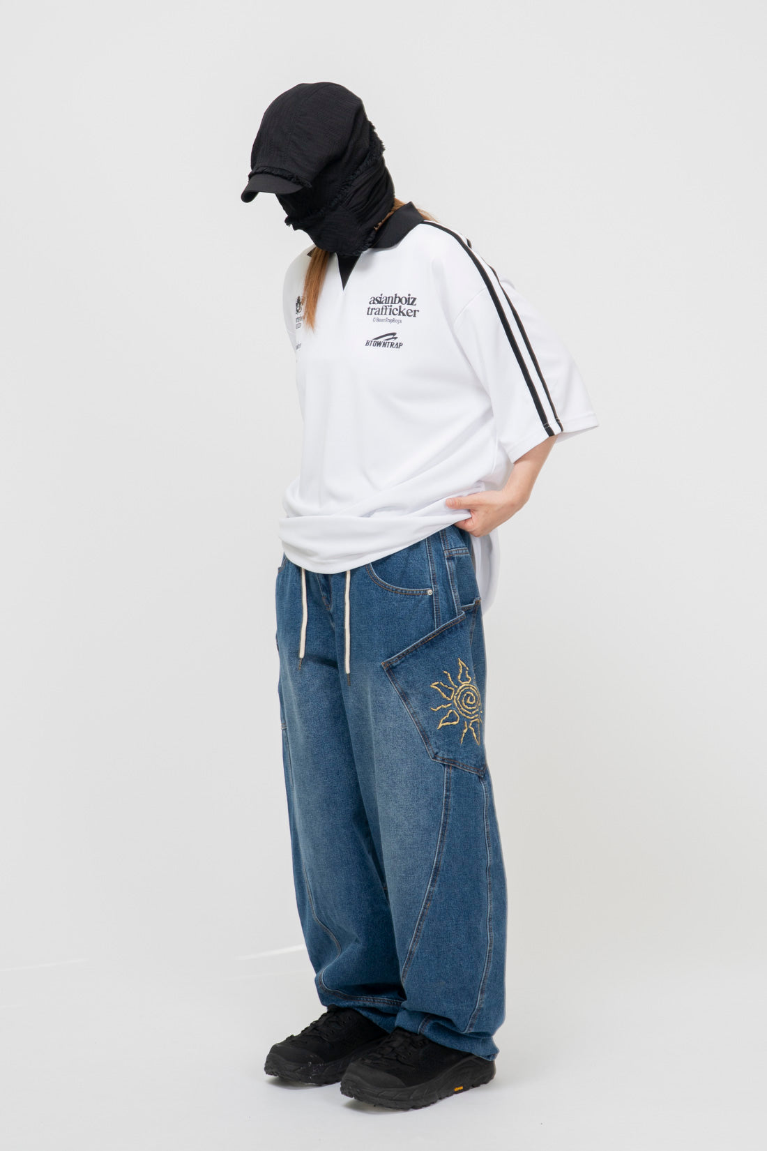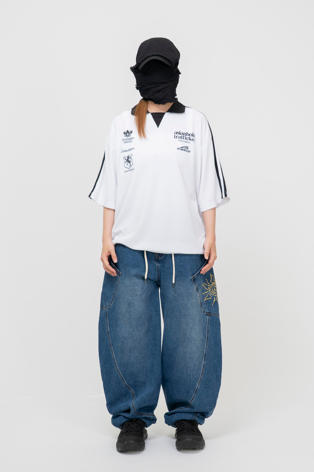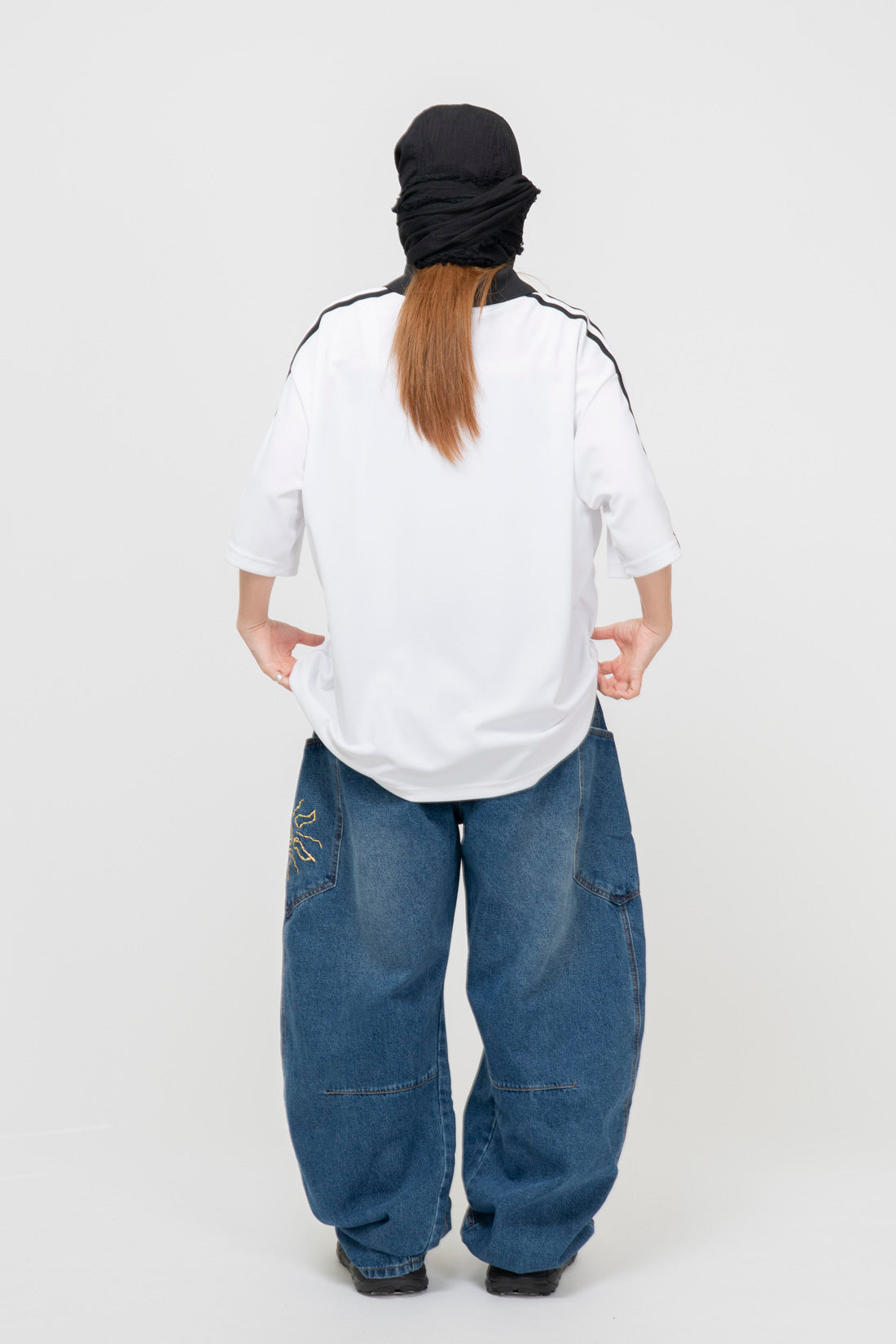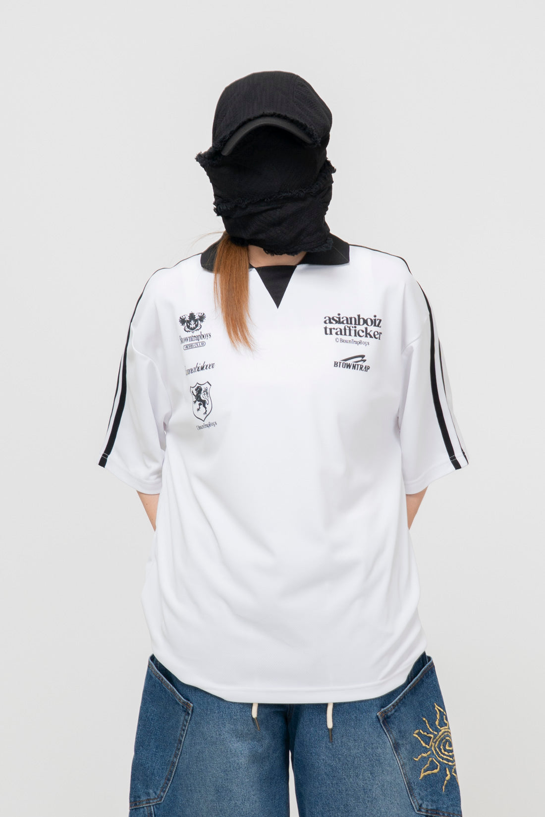 カラーブロックライン襟付きジャージ半袖Tシャツ