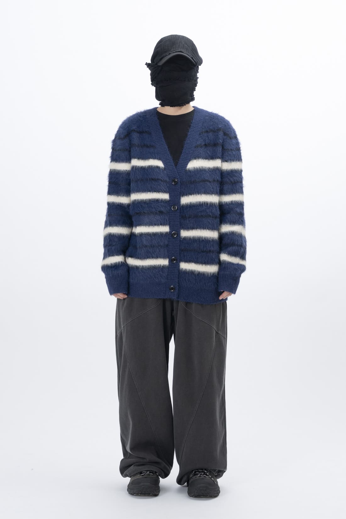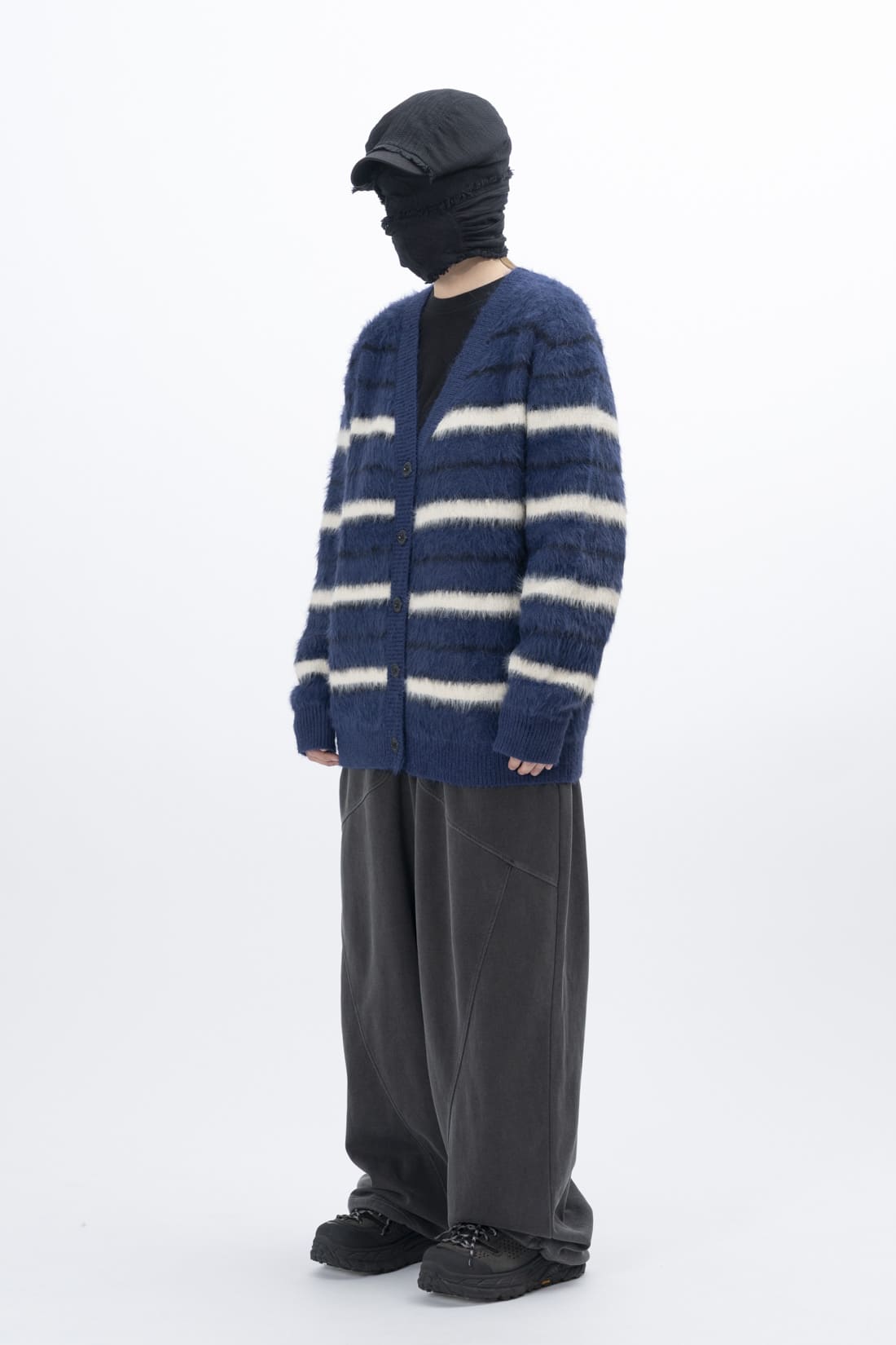 ポリアボーダーアンゴラカーディガン
