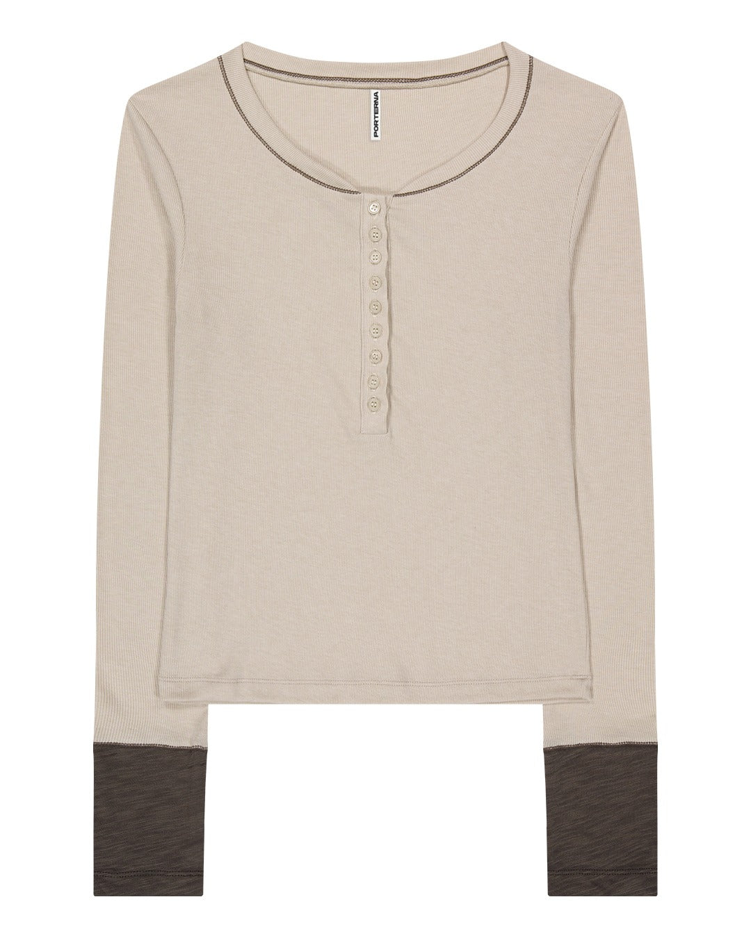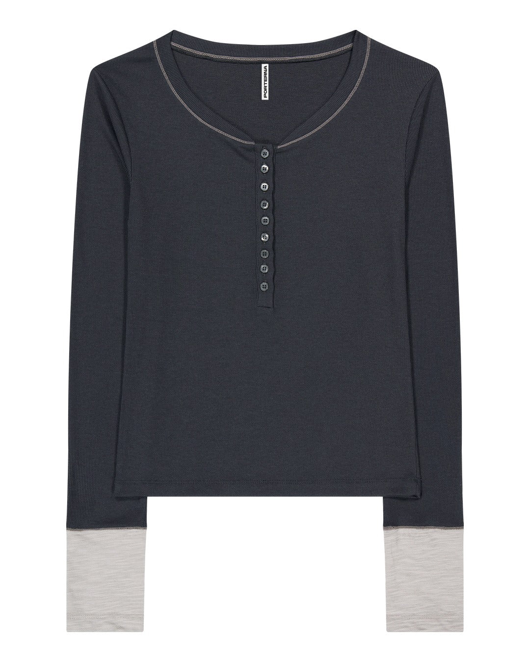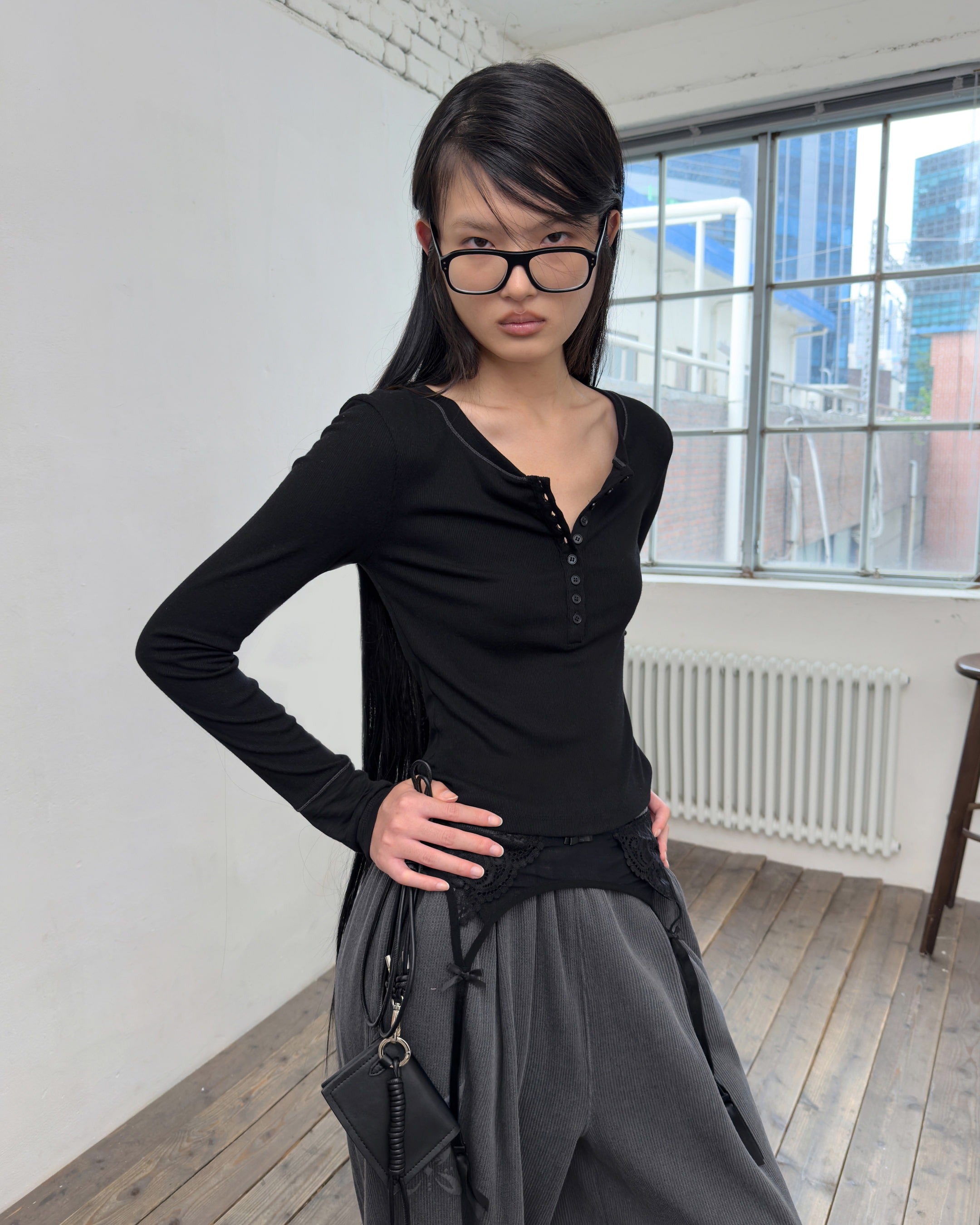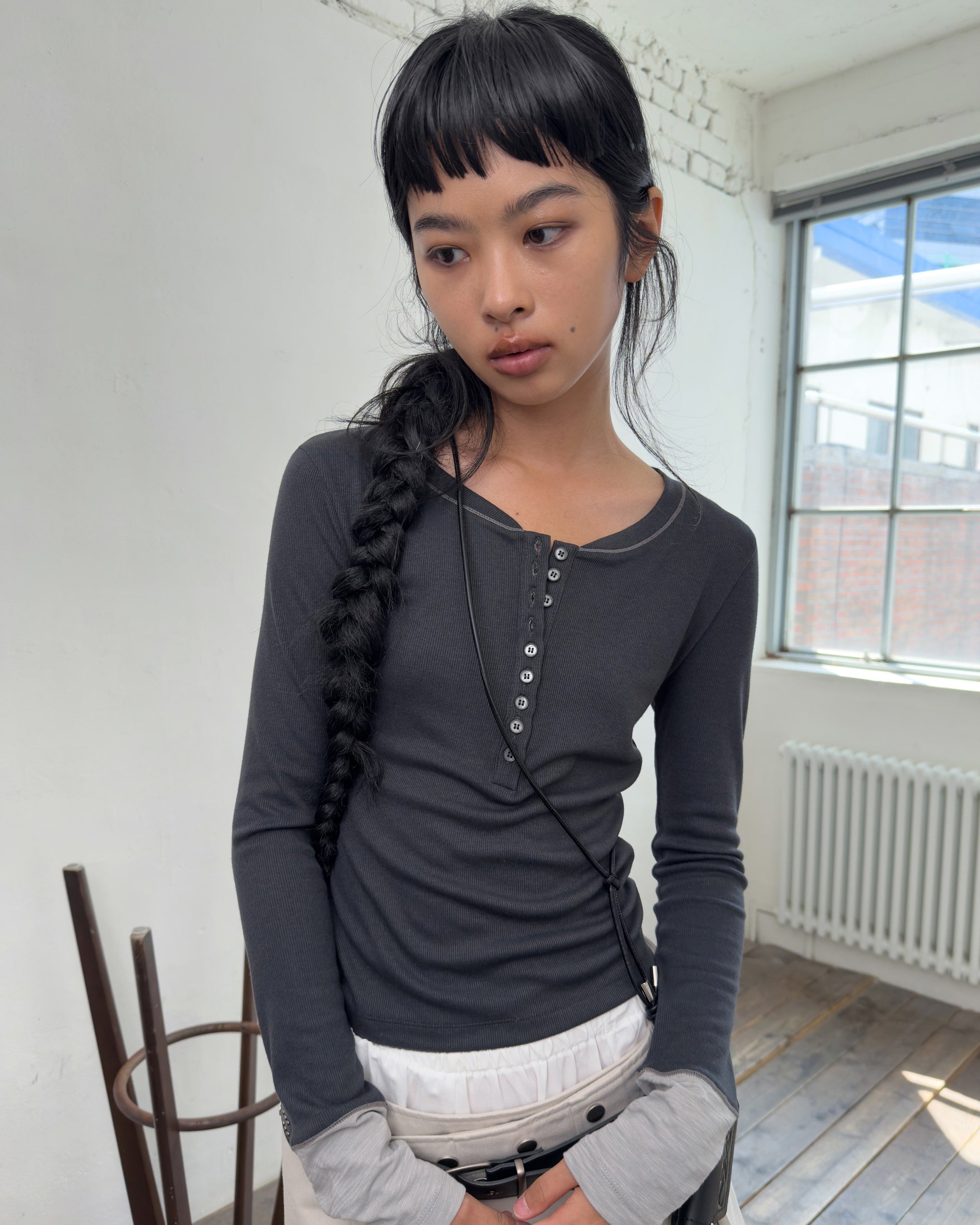 MIX POINT LONG SLEEVE BUTTON T-SHIRT