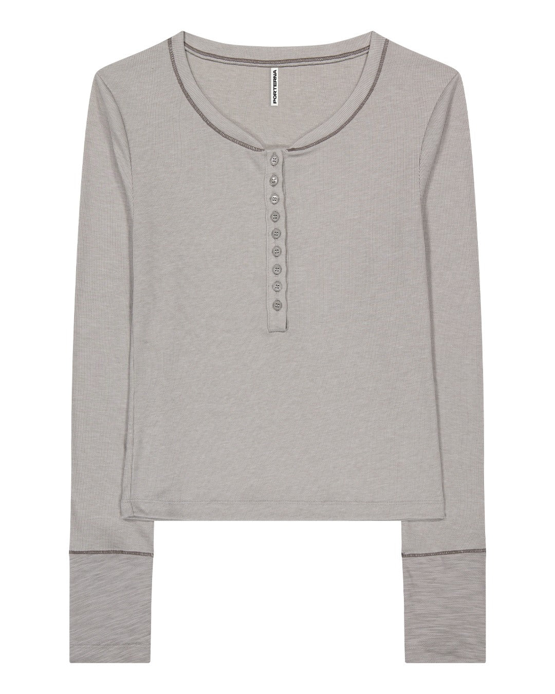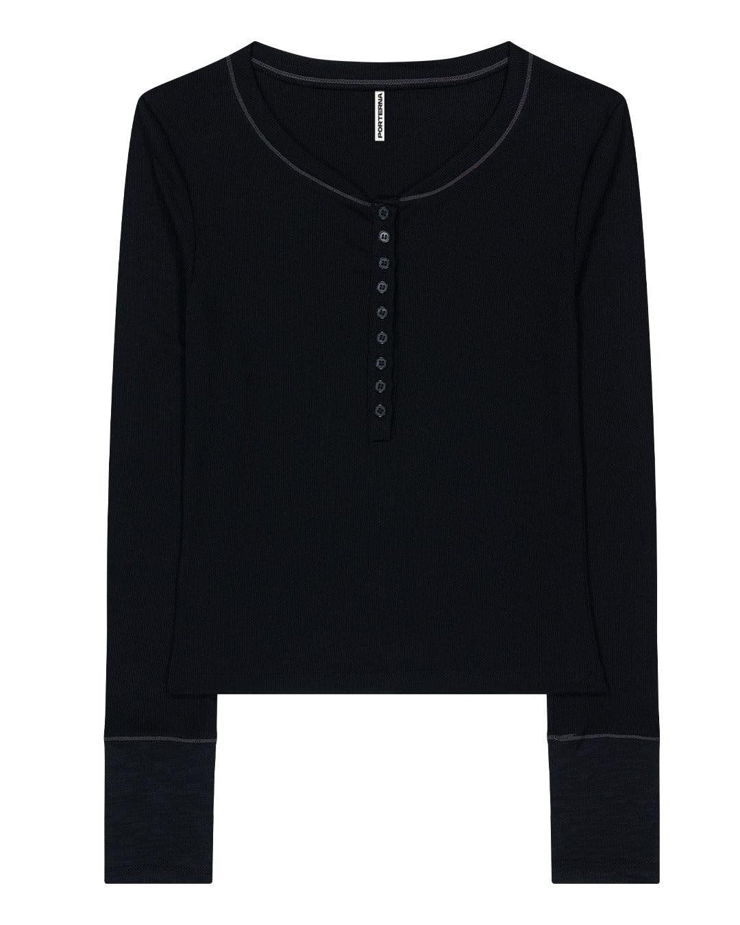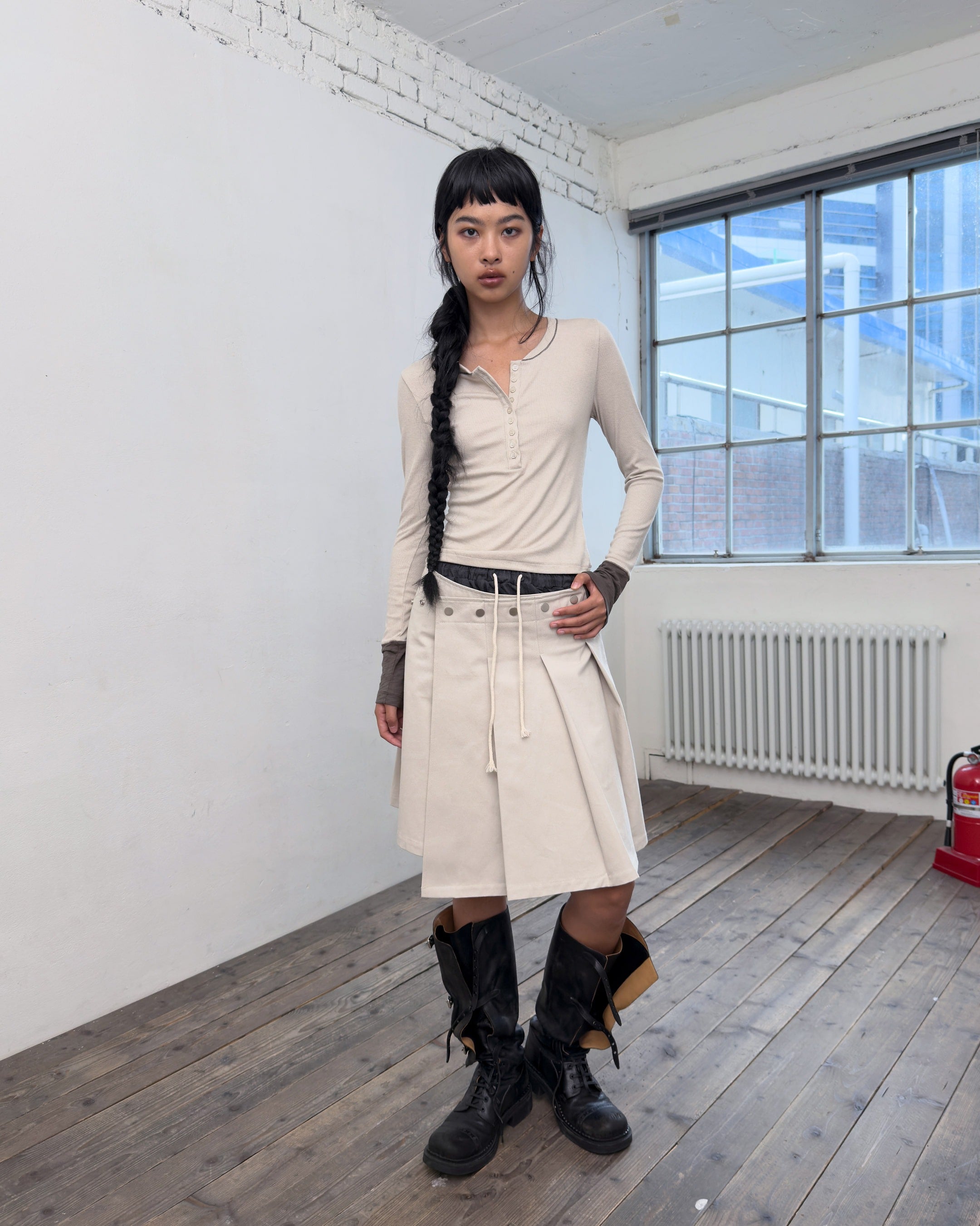 MIX POINT LONG SLEEVE BUTTON T-SHIRT