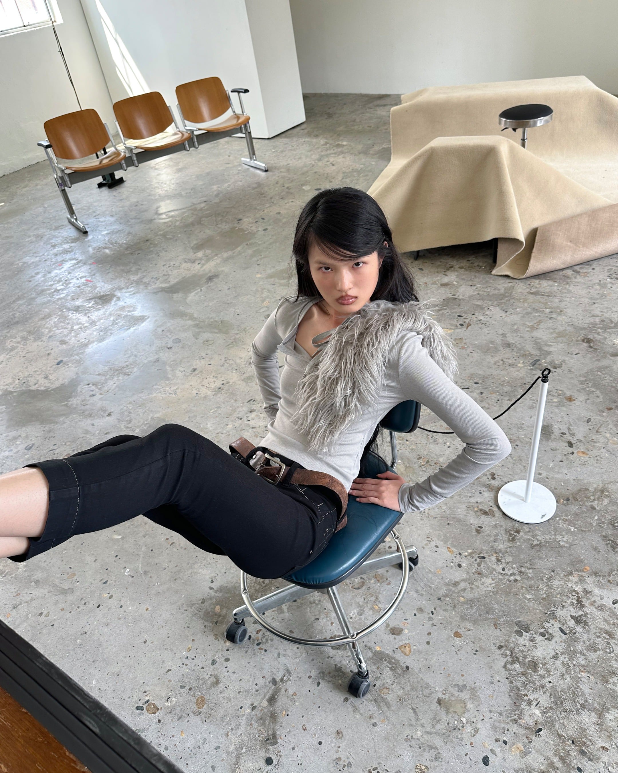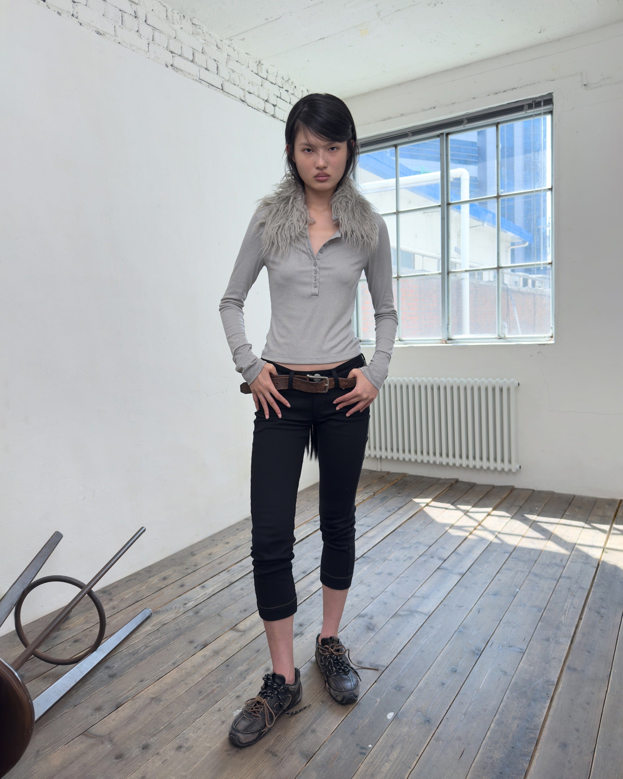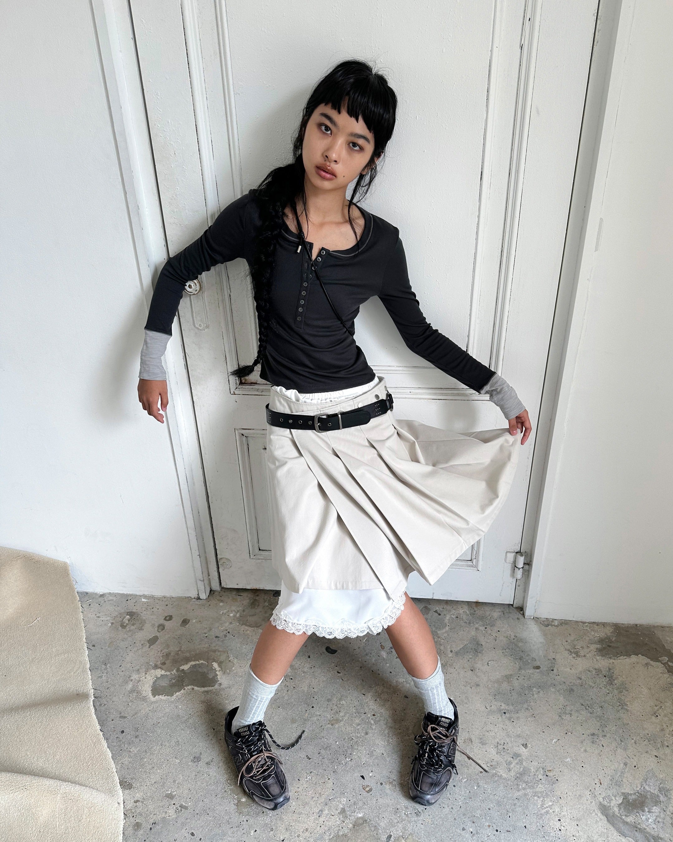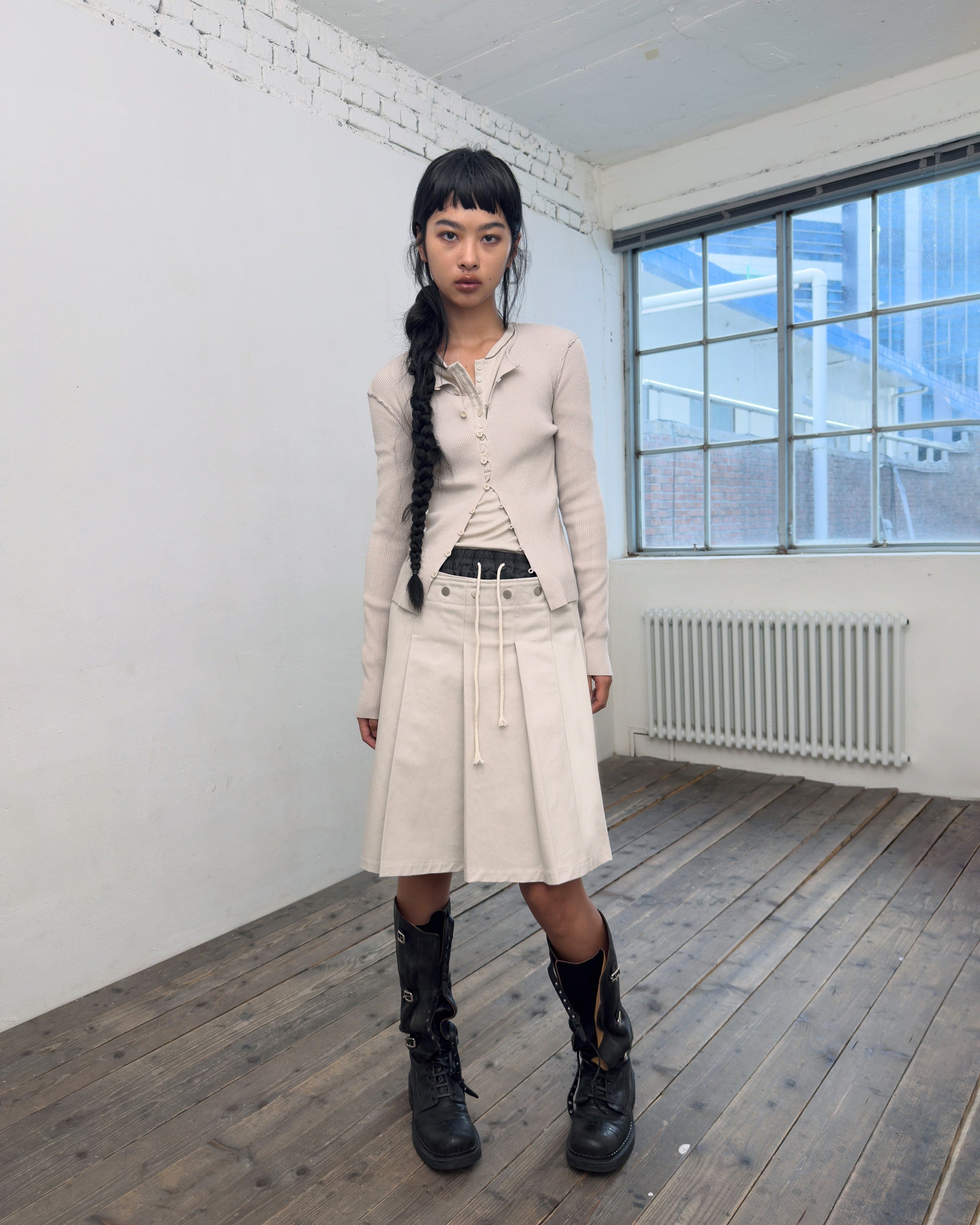 MIX POINT LONG SLEEVE BUTTON T-SHIRT