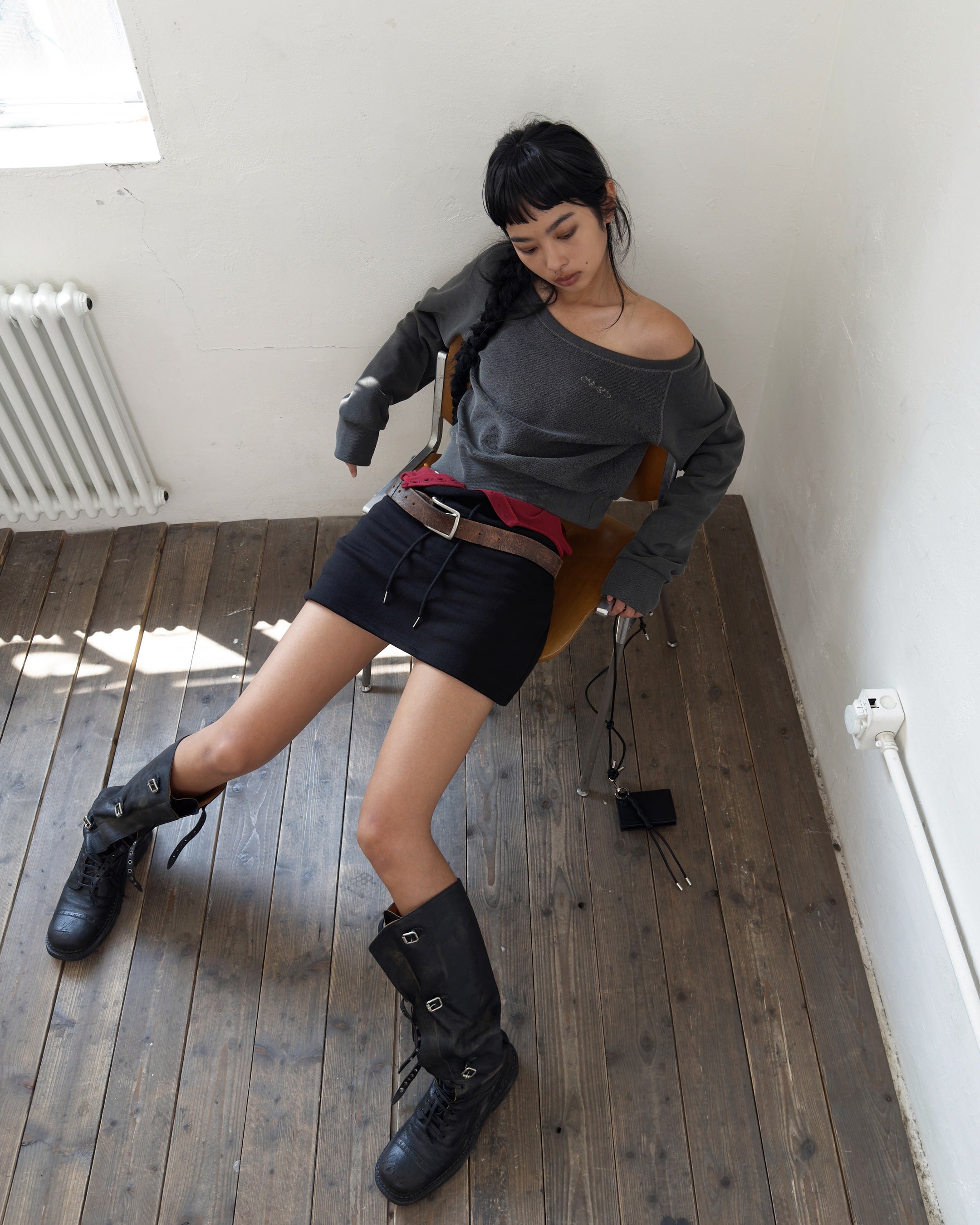 オフショルダーリバースループスウェットシャツ