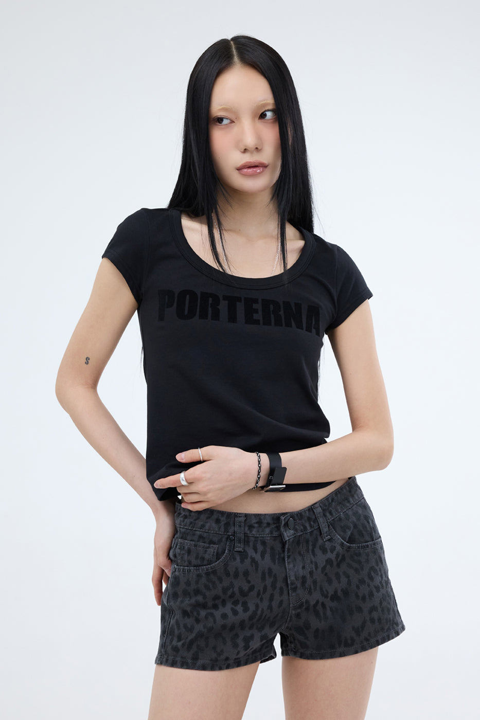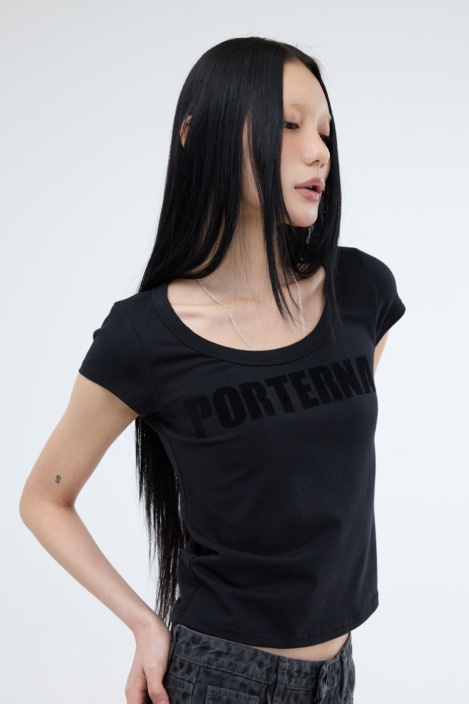 PRTN) U-neck Hurupi Logo Short Sleeve T-Shirt