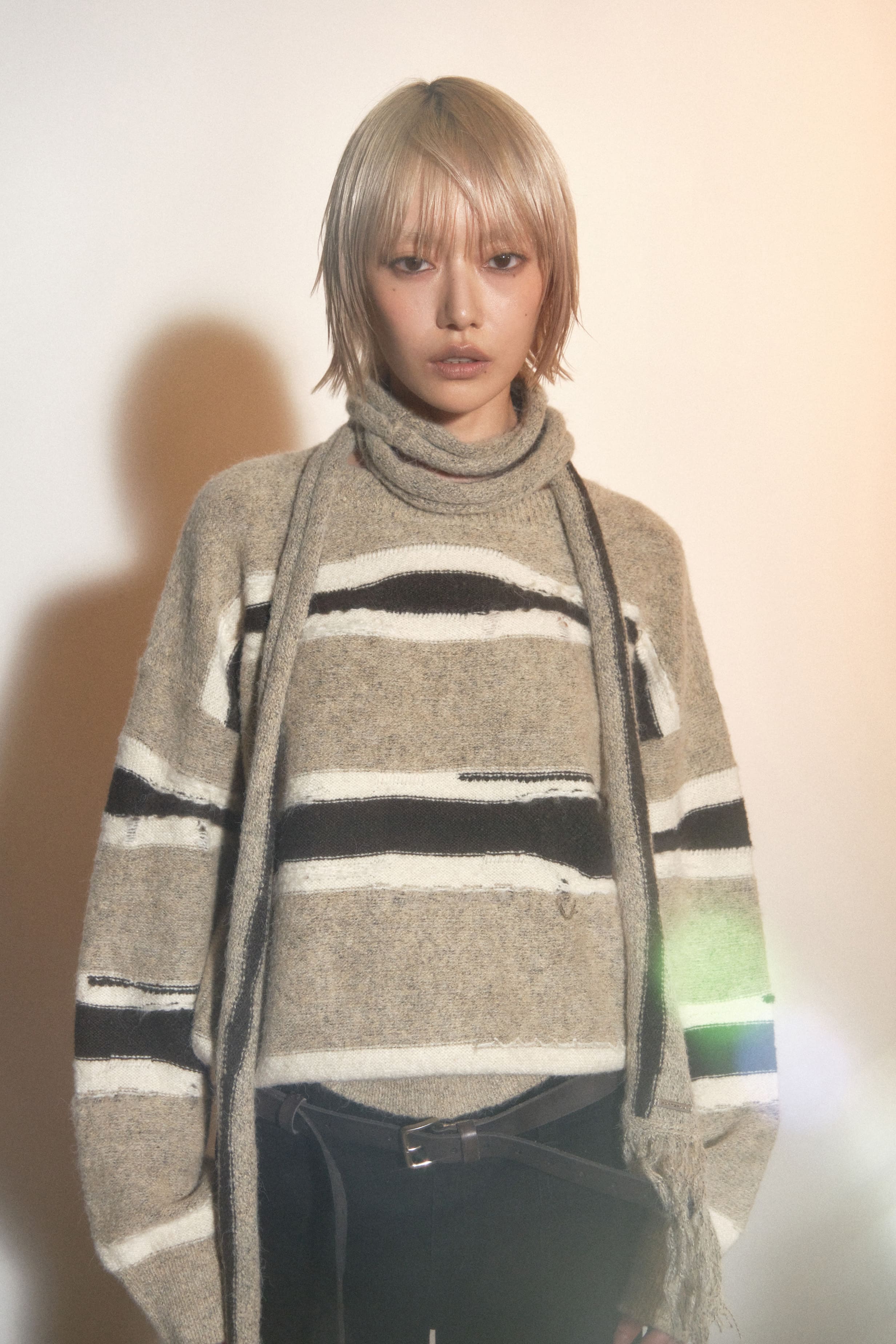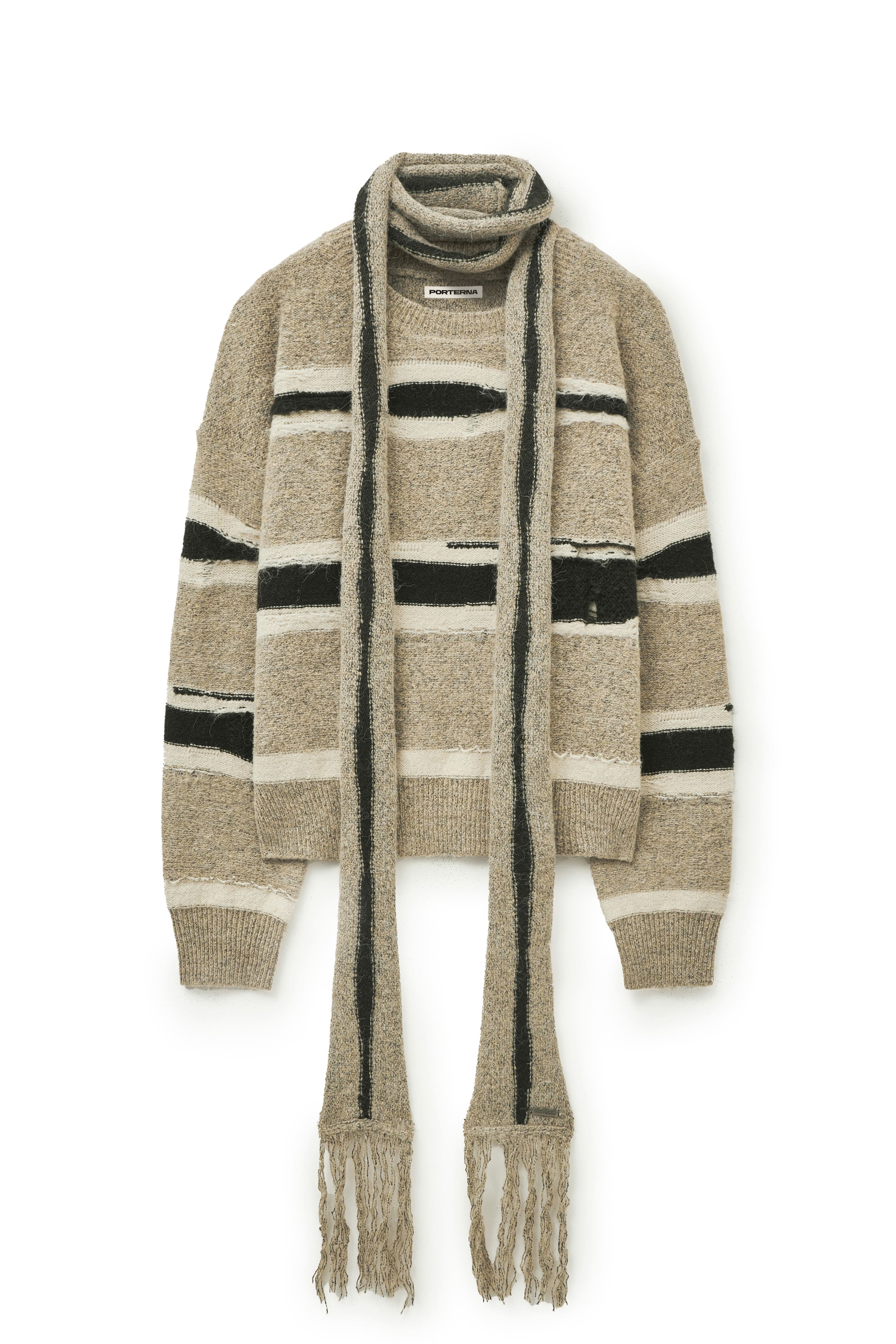 STRIPE DISTRESSED SWEATER SCARF SET