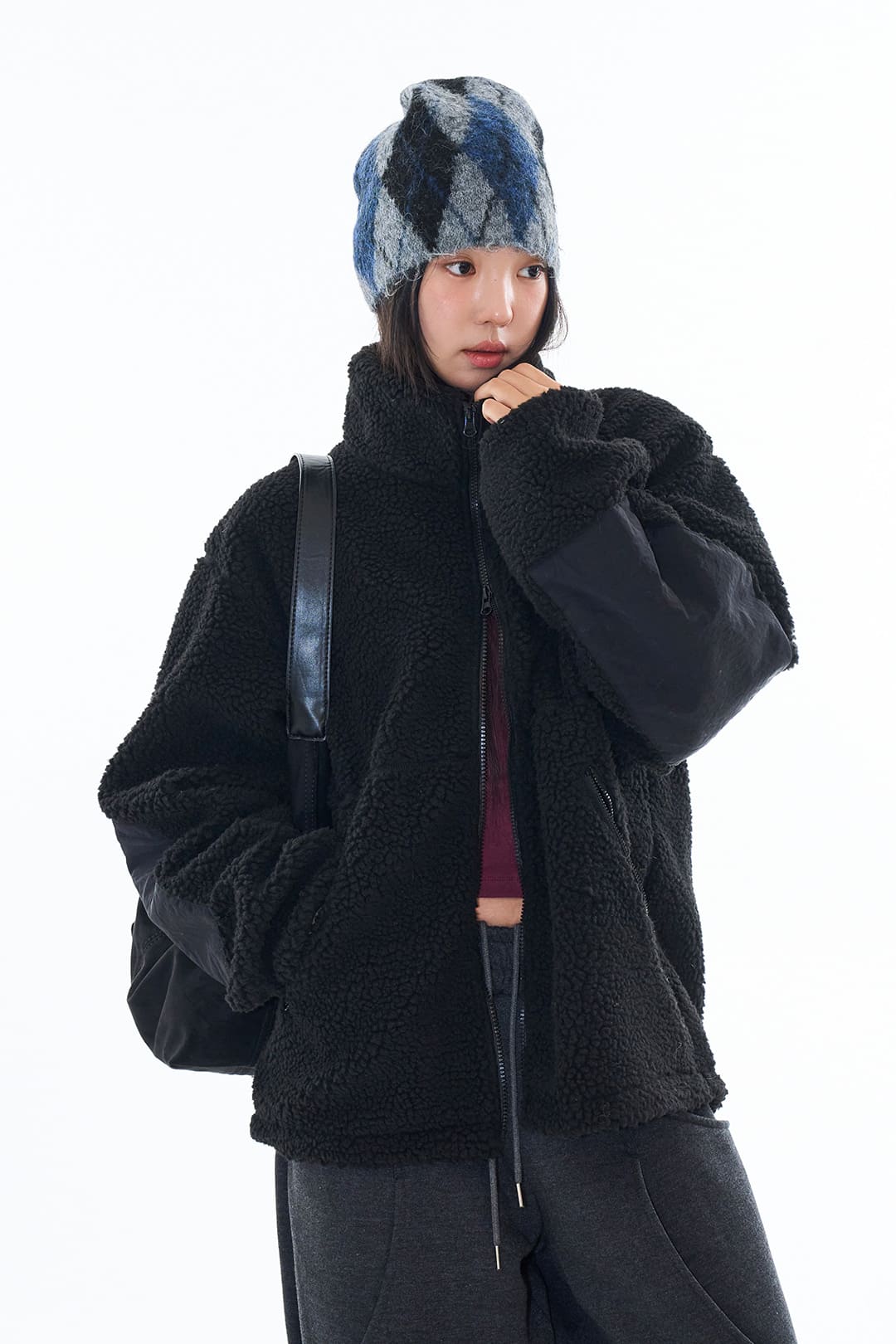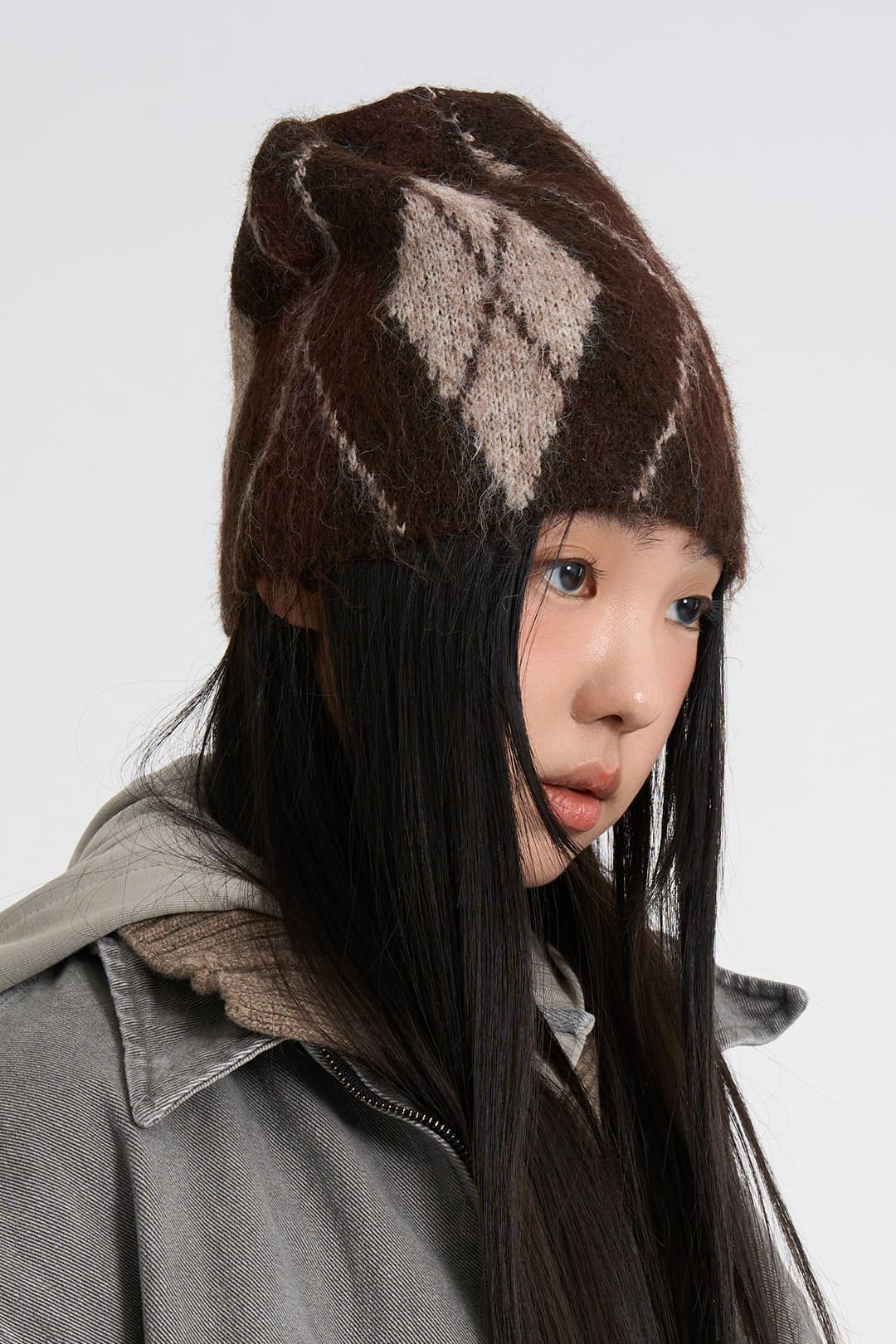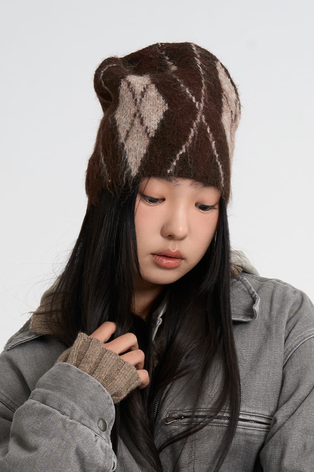 Argyle feather short beanie