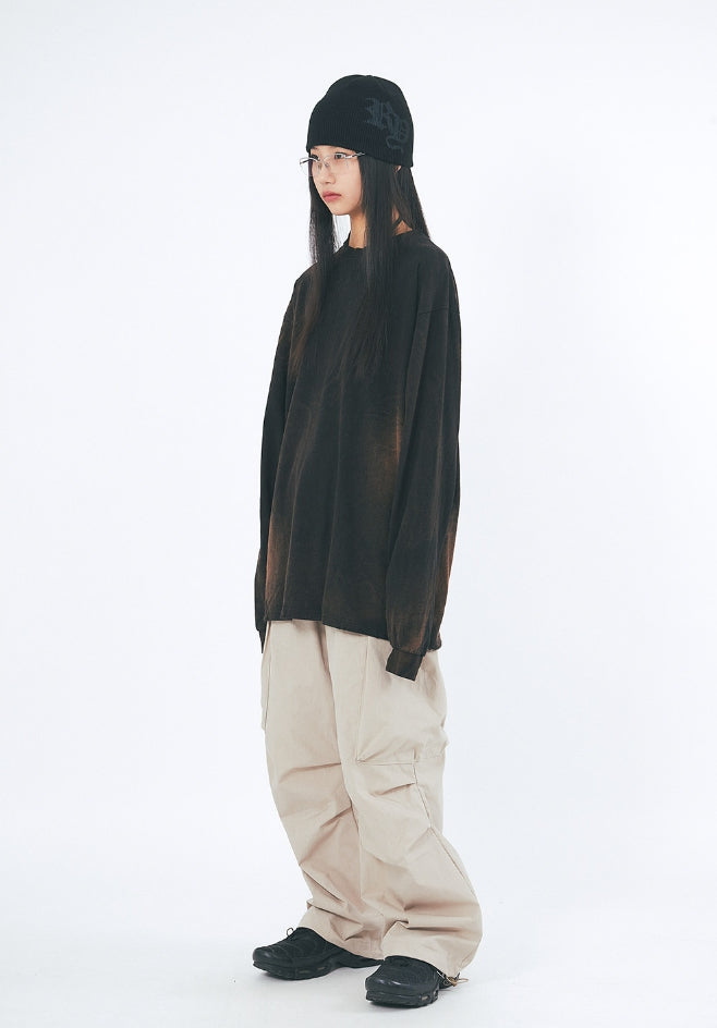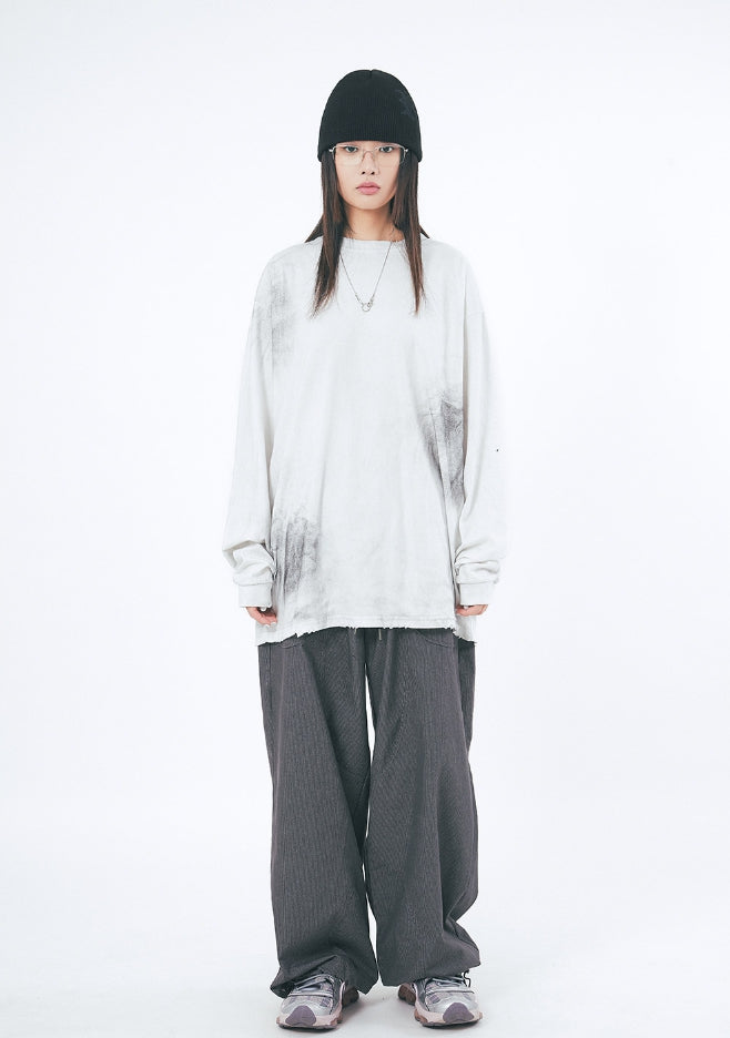 フェイディドウォッシドビンテージクラック長袖Tシャツ