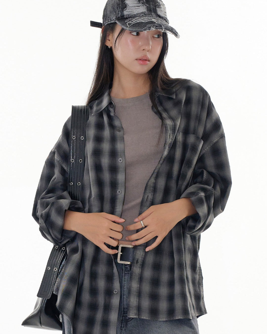 Grid vintage washed check shirt