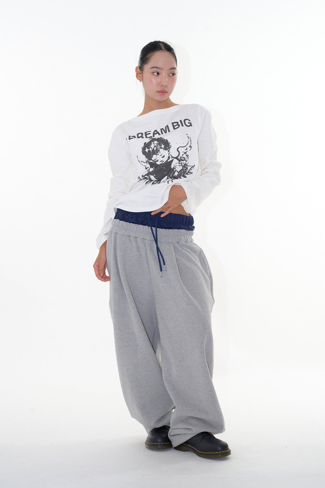 -ONE SIZE (ウエスト(ゴム)64 ヒップ112 股上42 股下72 もも周り80 裾周り52 総丈114)