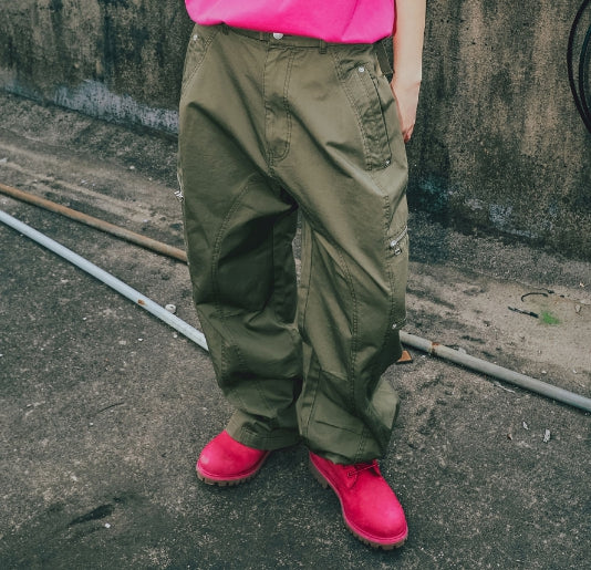 BIKER WASHED WIDE PANTS