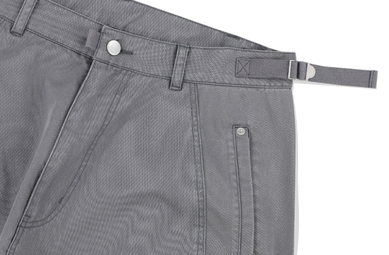 バイカーウォッシュ加工ワイドパンツ