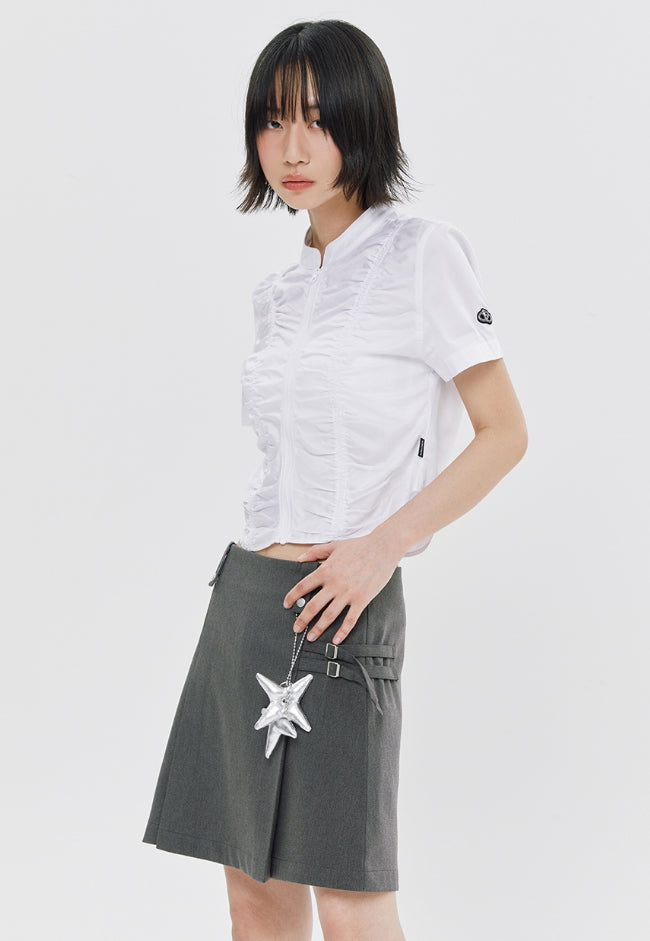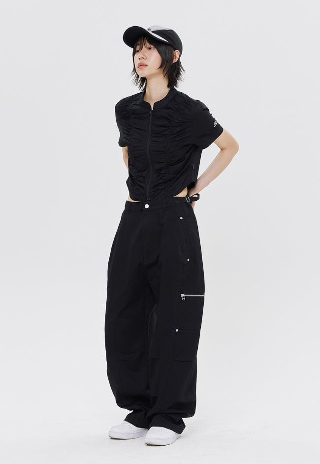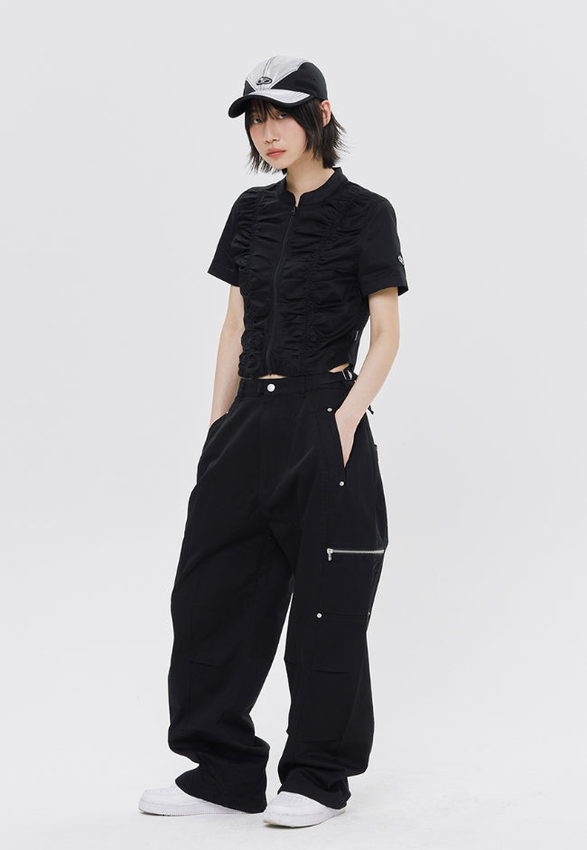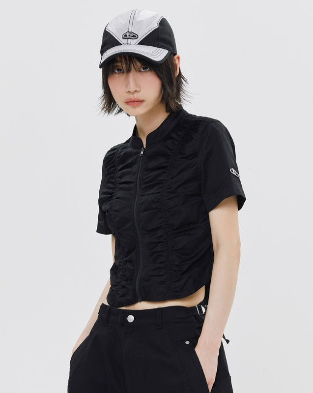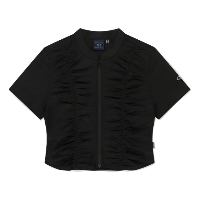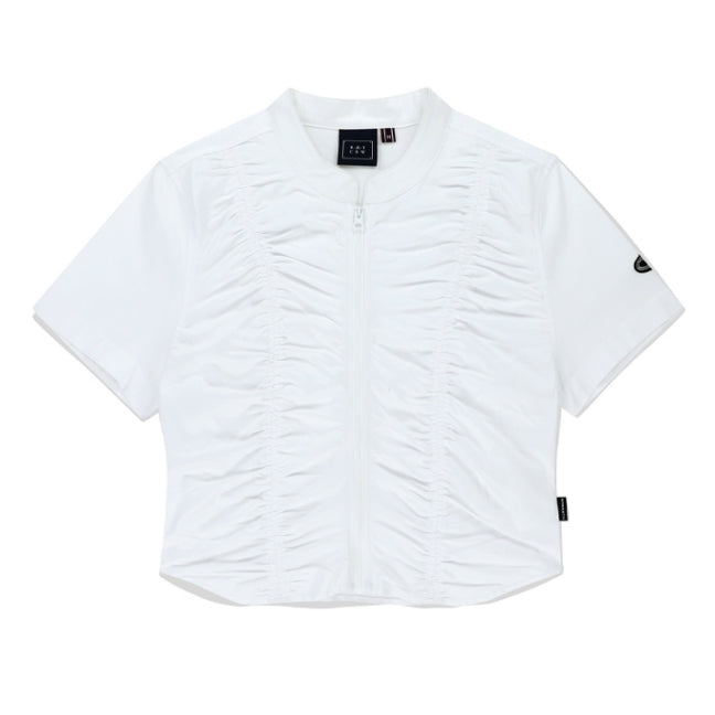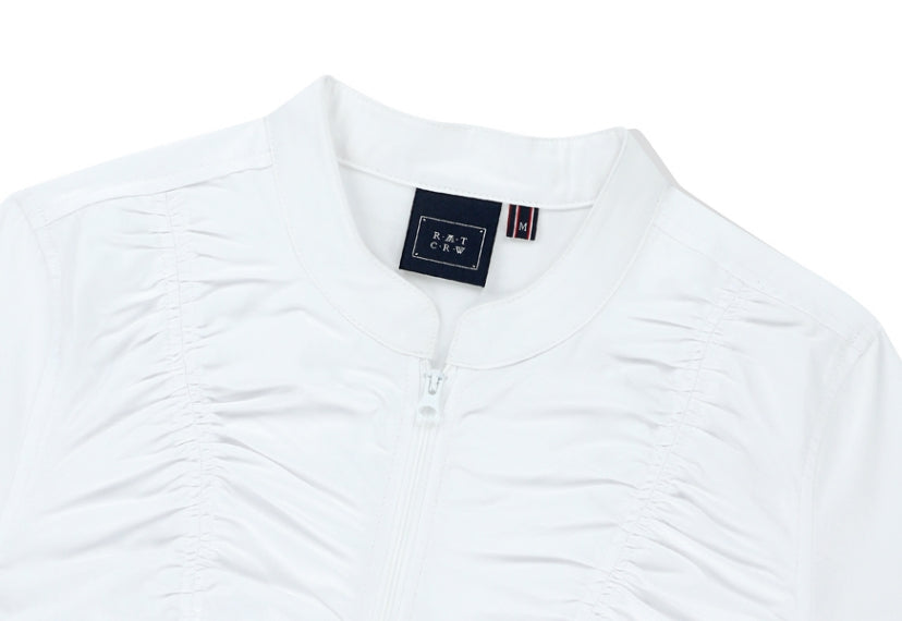 SHIRRING COTTON ZIP UP