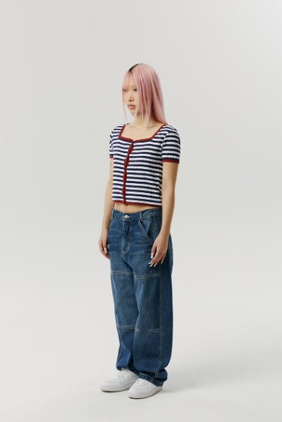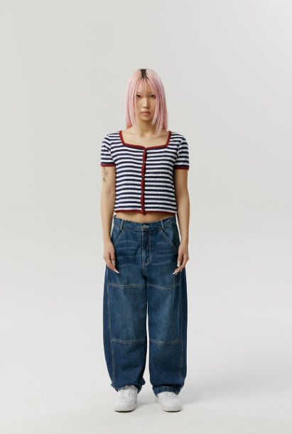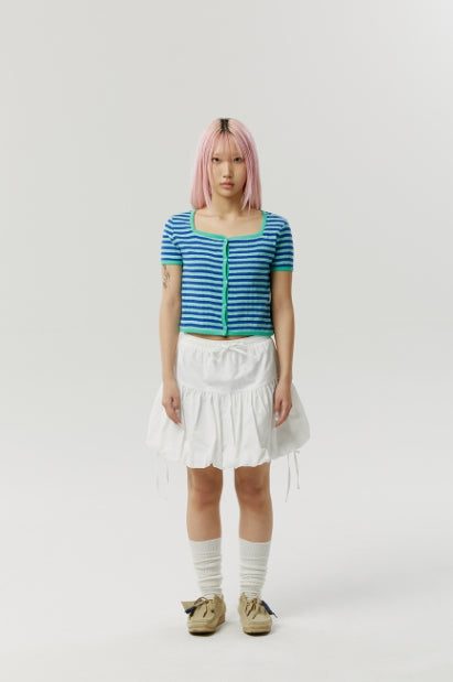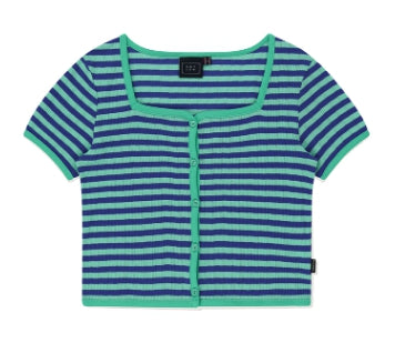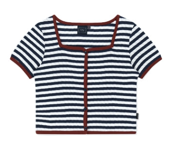 SQUARE NECK STRIPE CARDIGAN