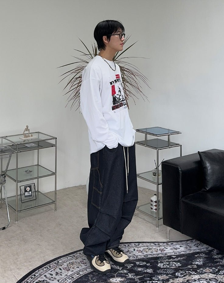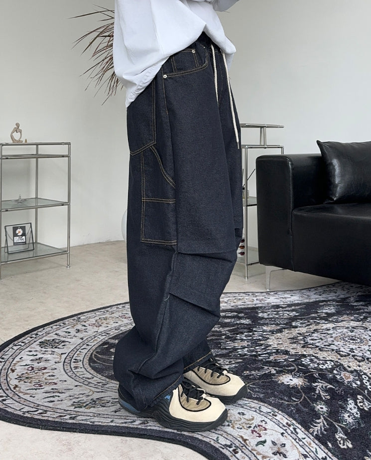 −ONE SIZE (ウエスト(ゴム)66-104 ヒップ116 股上37 股下70 もも周り66 裾周り60 総丈107)