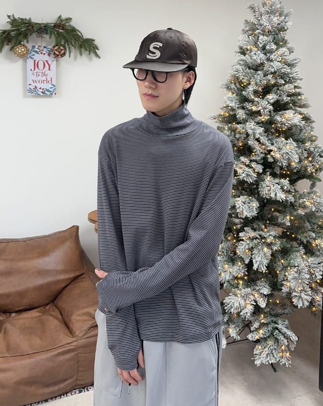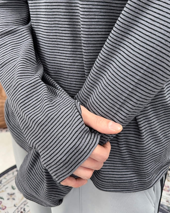 ディフェンスフィンガーホールボーダーポーラーTシャツ