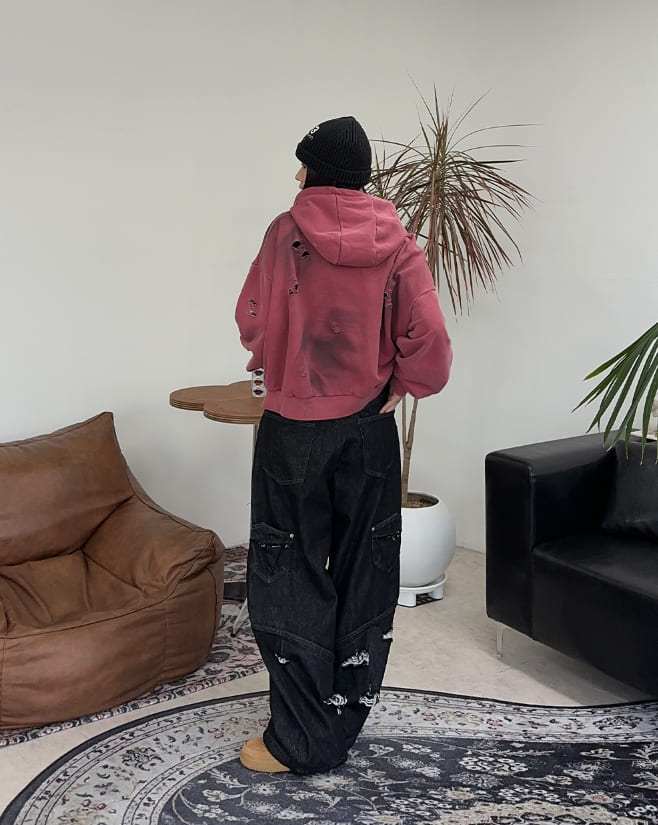 フェリスクロップドダメージフーディ