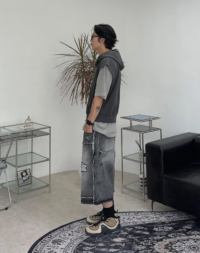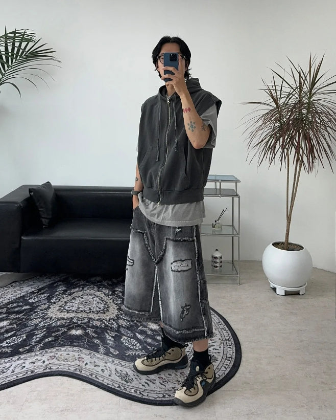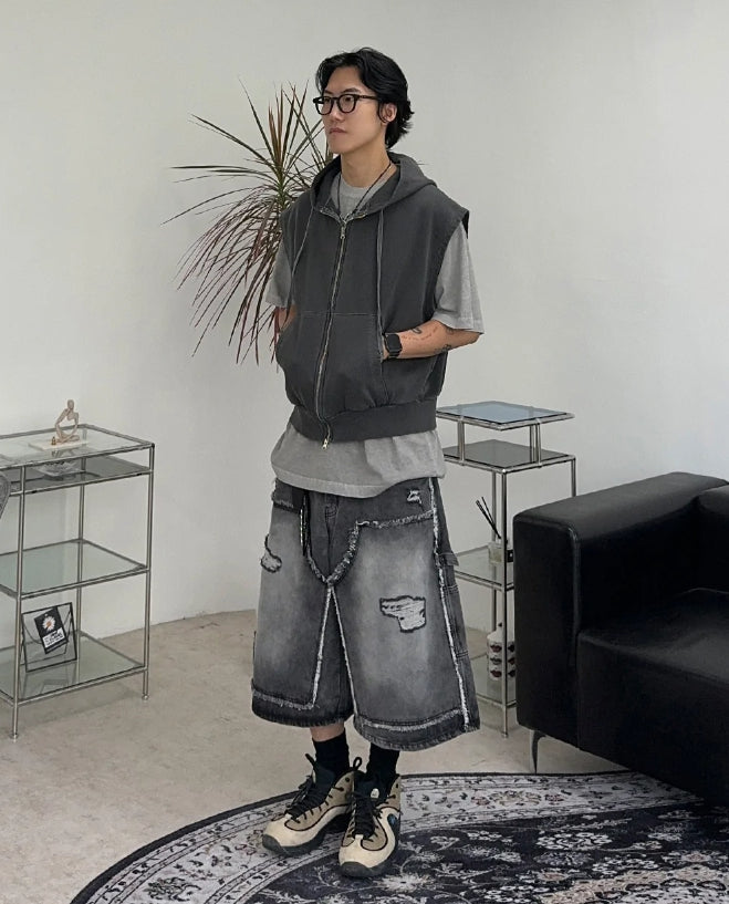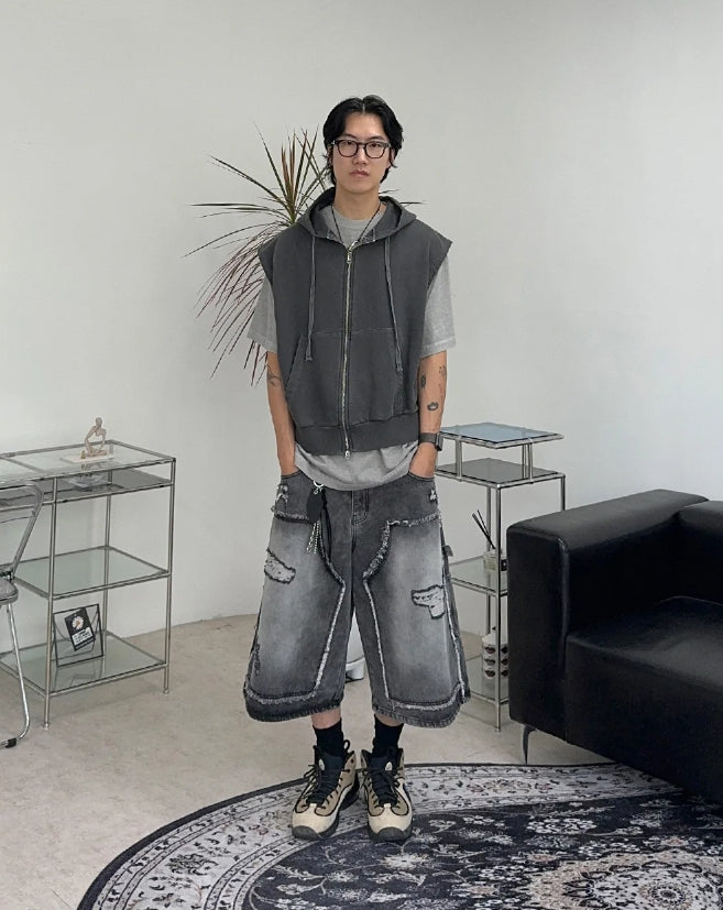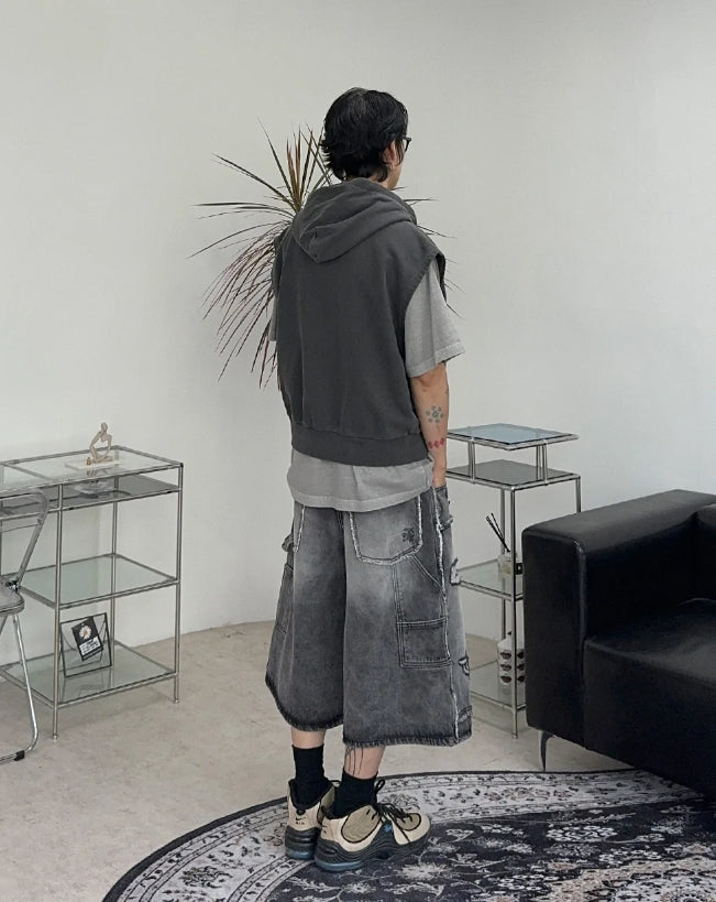 ヘンズピグメントフードジップアップベスト