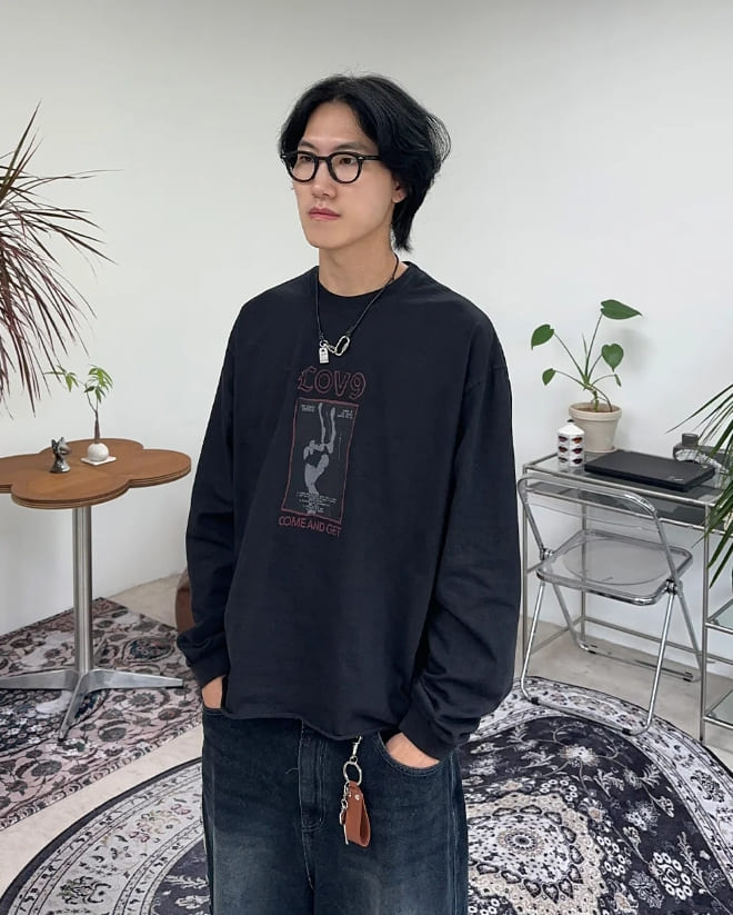 ヘイマンクロップウォッシュ加工長袖Tシャツ