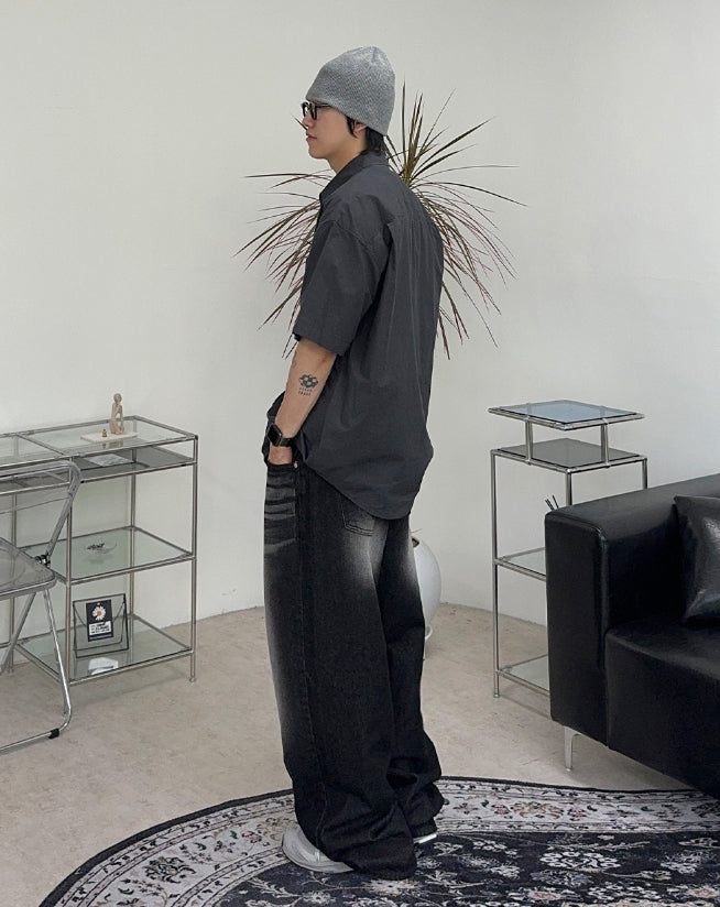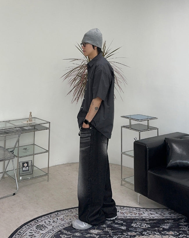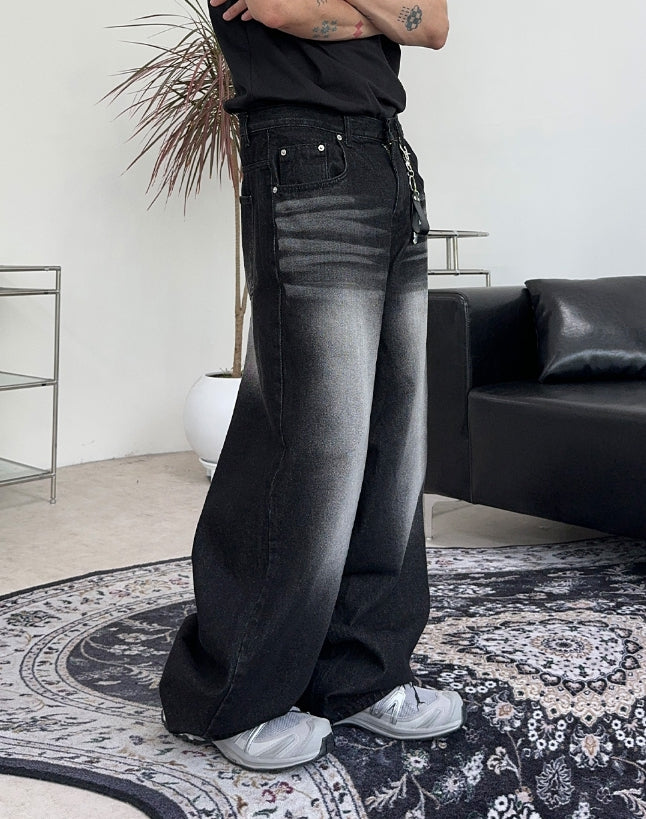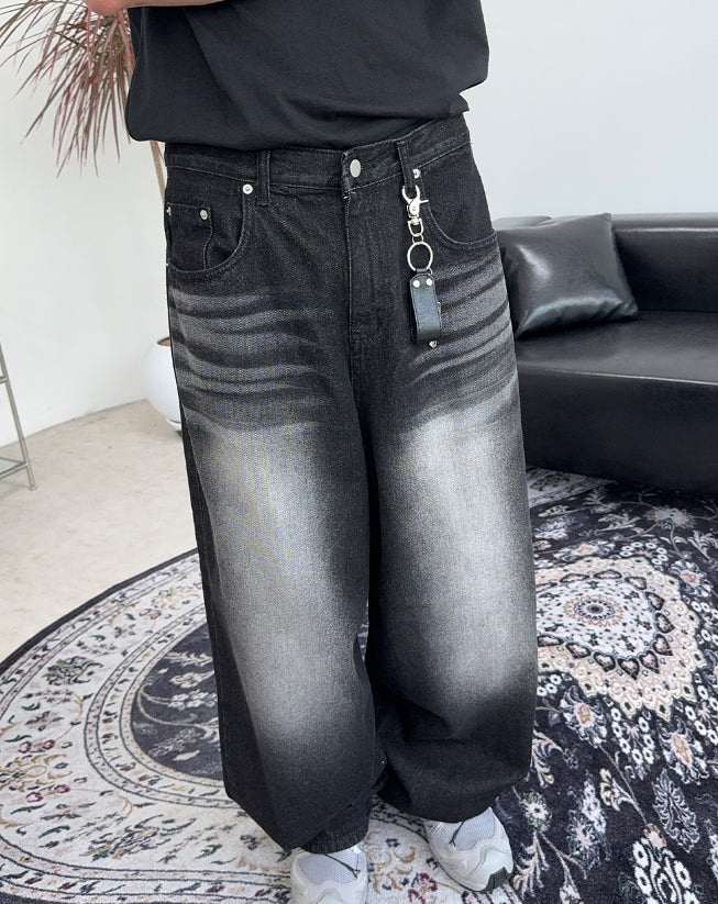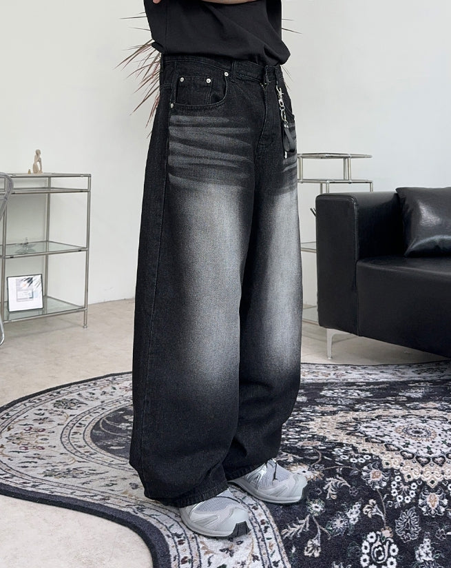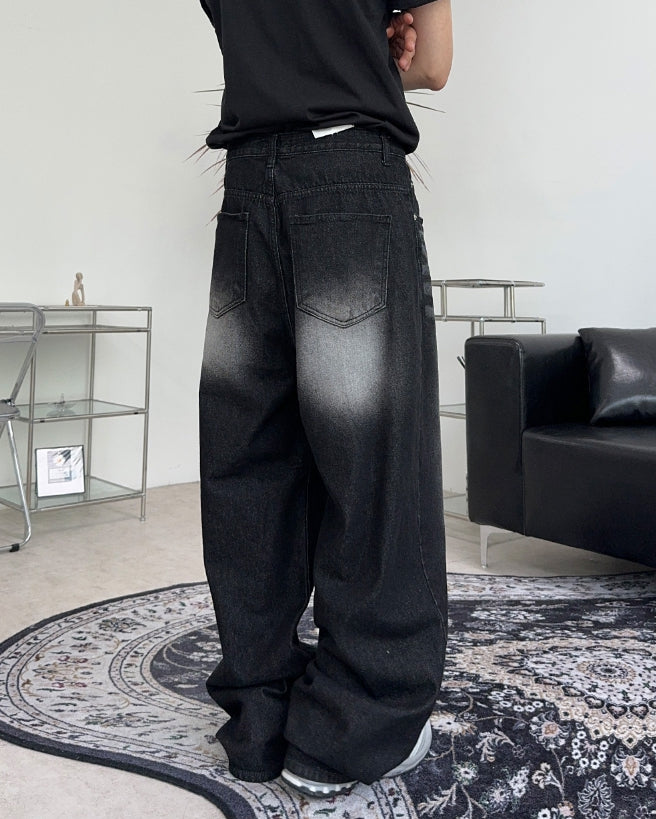 ケイディブラックウォッシュ加工ワイドデニムパンツ