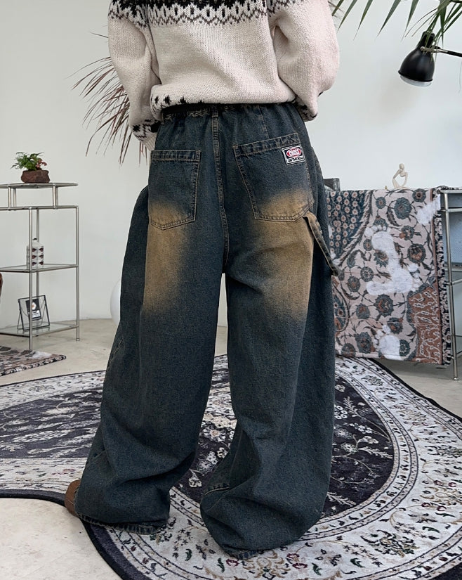 -ONE SIZE (ウエスト(ゴム)64-92 ヒップ132 股上40 股下65 もも周り82 裾周り56 総丈105)