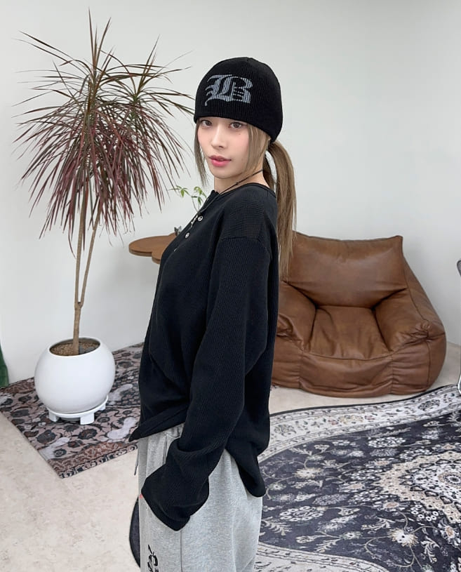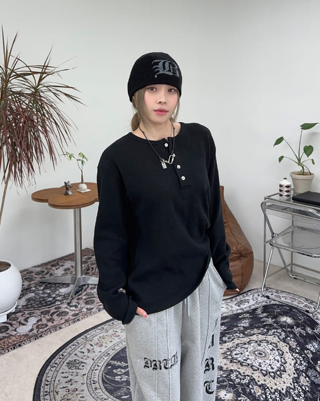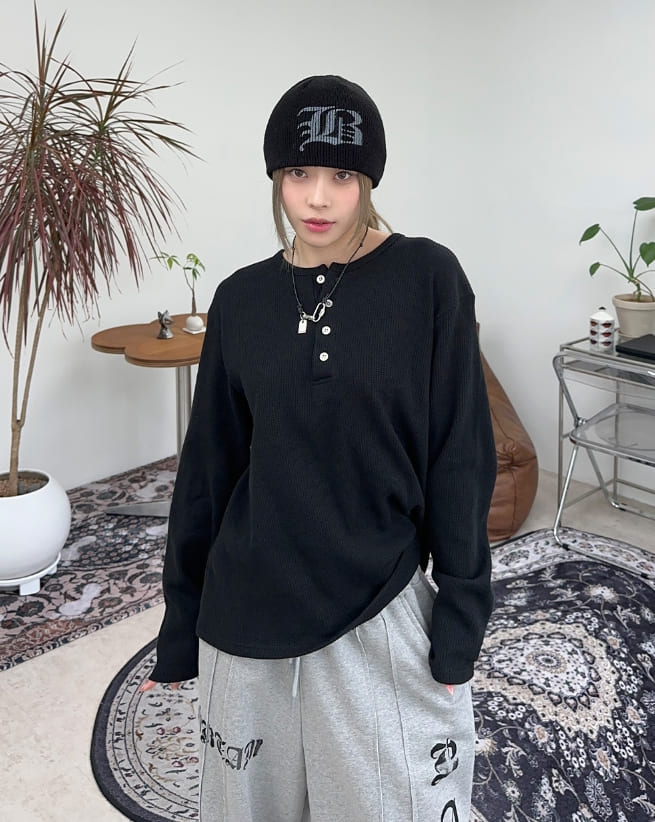 ケンズワッフルヘンリーネック長袖Tシャツ