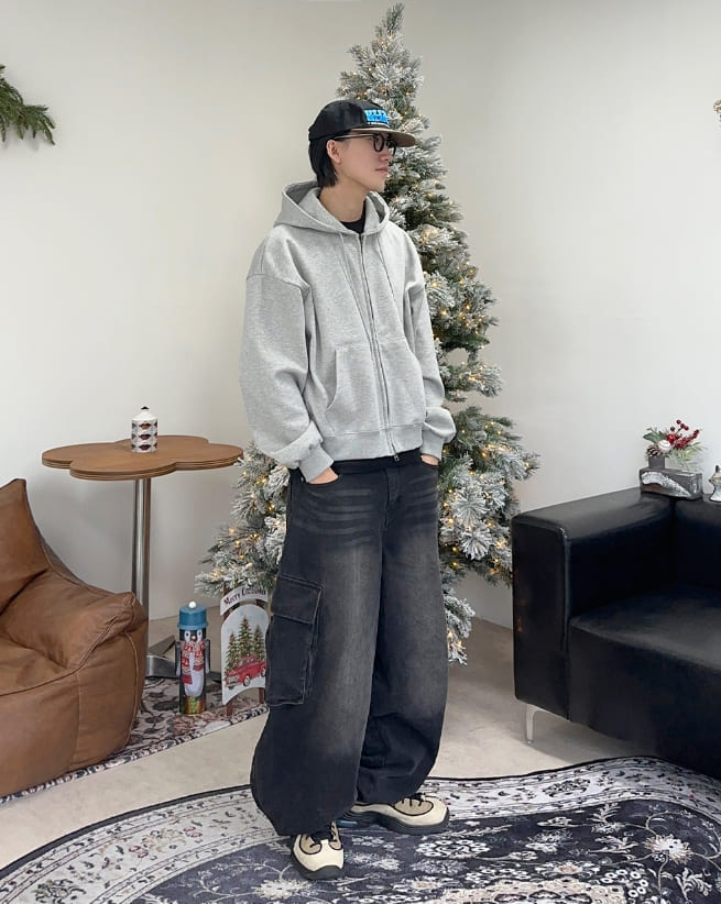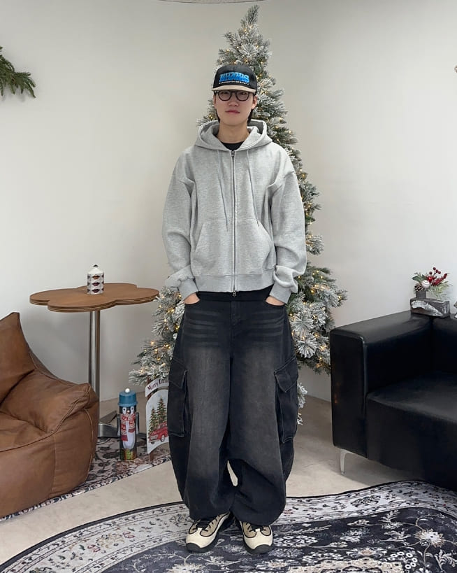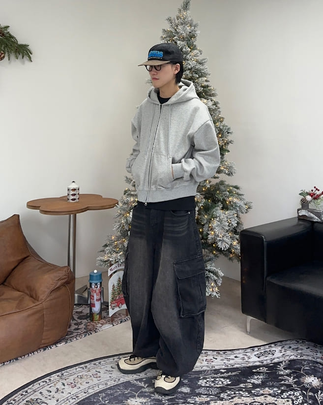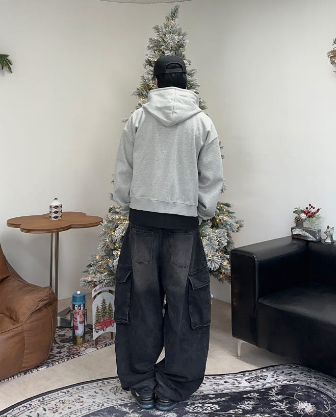 Laen Crop Brushed Hood Zip-Up